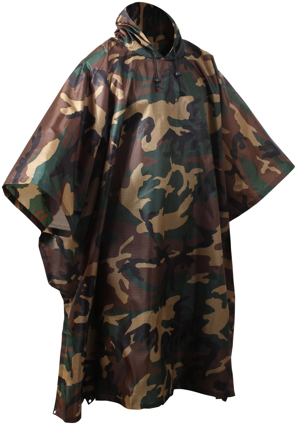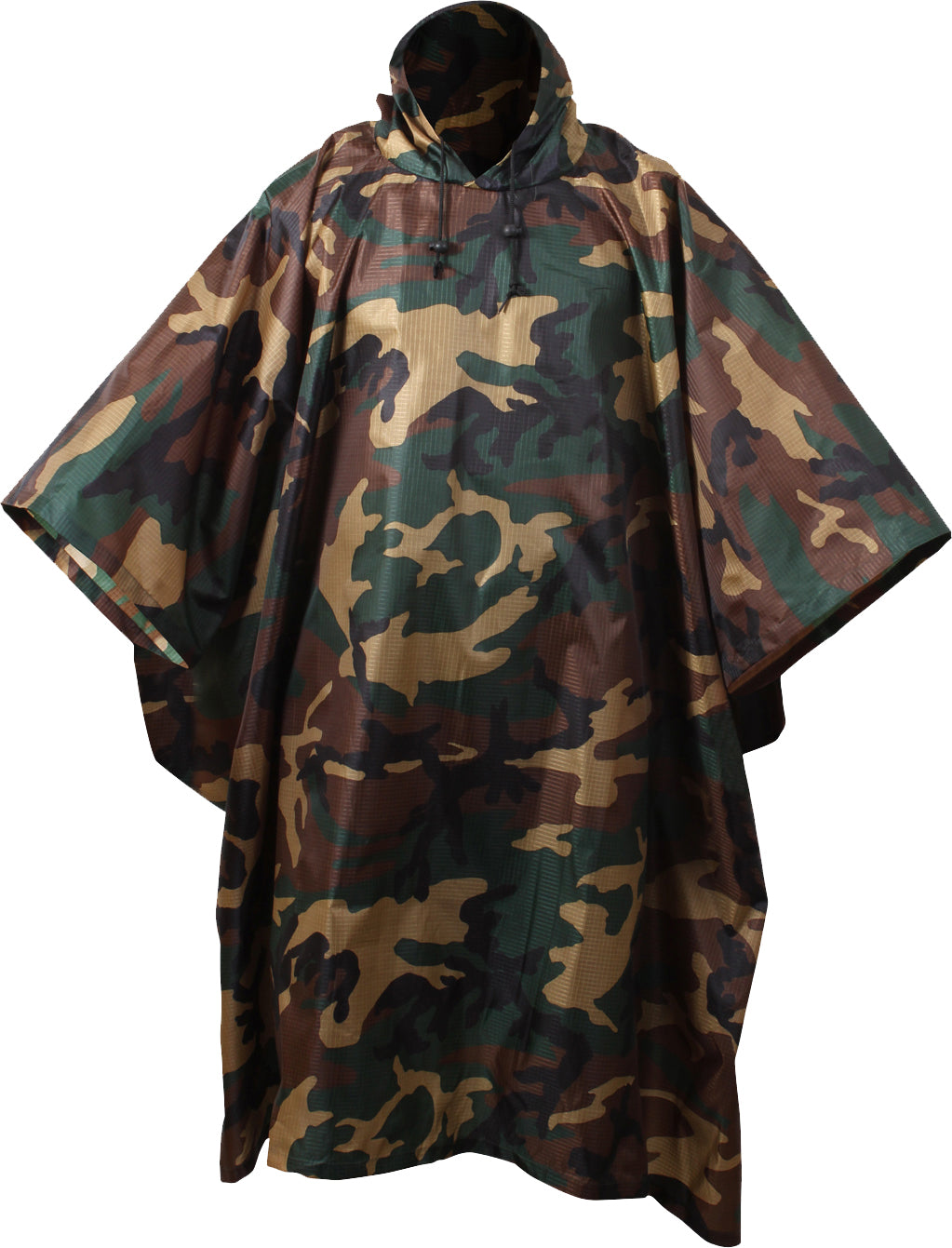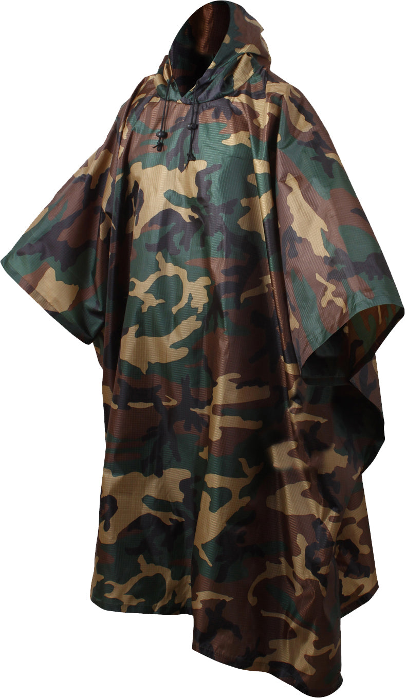 | Product | Woodland Camouflage - GI Enhanced Military Style Poncho - Polyester Ripstop |