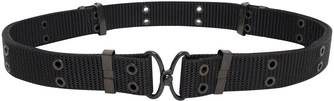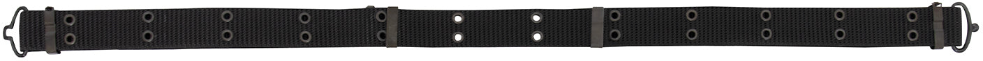 Length 50" (inches) adjustable. Smaller version of larger pistol belt. Grometted with eyelets to mount old style belt. Very stylish and comfortable. Works great. Unisex. Fits BDU pants and many other's. GI Government Issued style. Black mini pistol belt. Dimensions: 50" x 1.25".