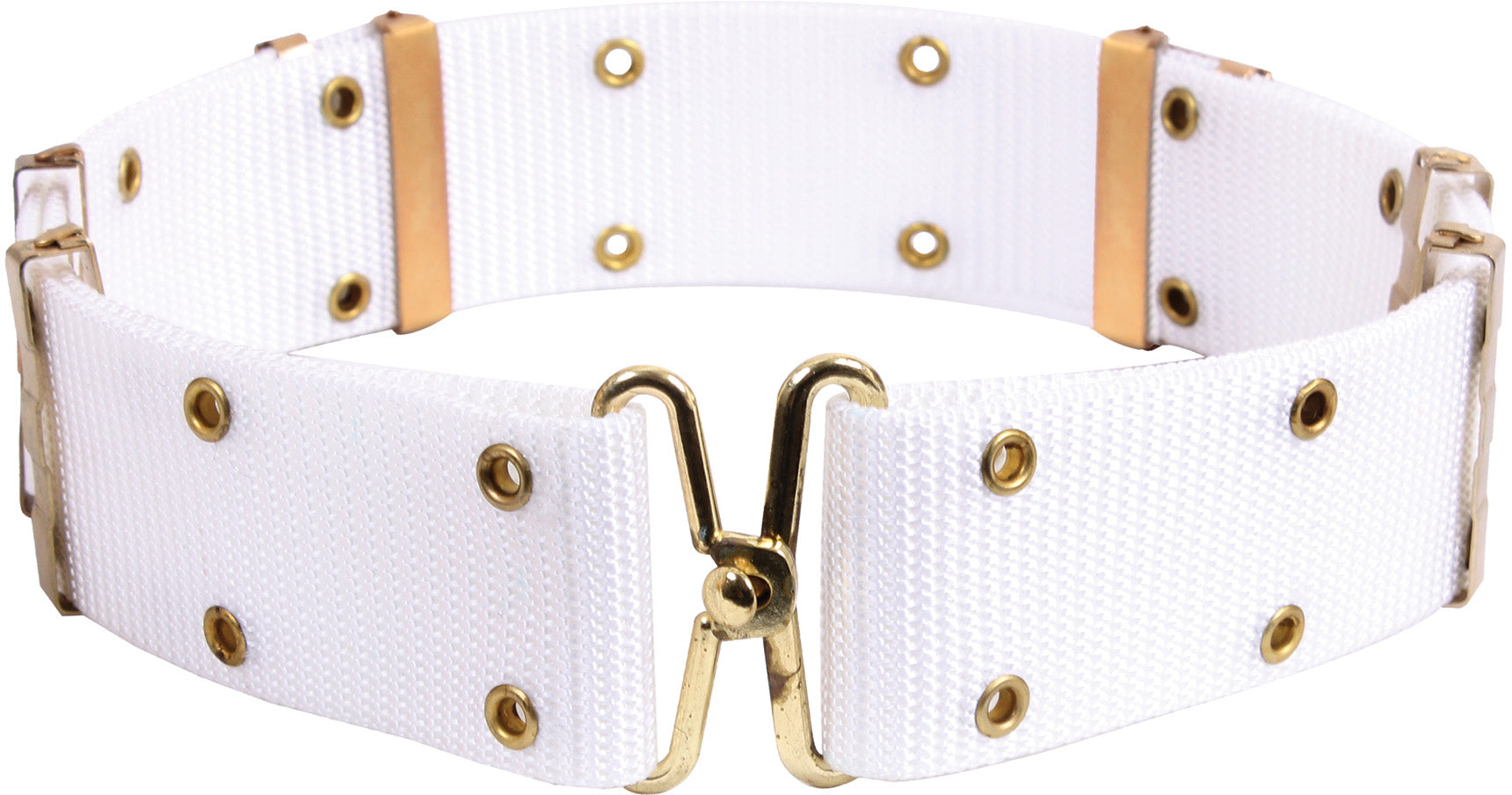 | Product | White Army Style Pistol Belt with Gold Brass Buckle - Nylon |
