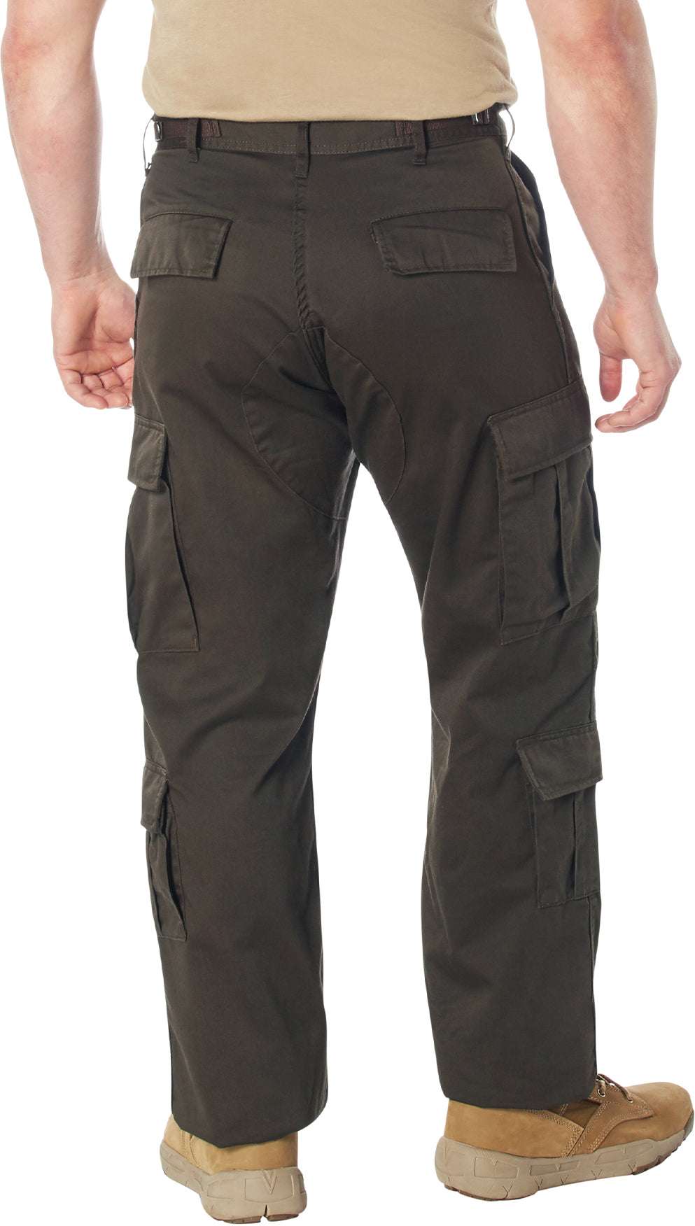 The vintage paratrooper fatigue pants are a military inspired pants, constructed after the BDU (Battle Dress Uniform) pants. The vintage paratrooper fatigue pants are worn today as a fashion statement, for sports such as air soft and paintball, for use by law enforcement personnel and by a wide range of military's. The brown polyester / cotton vintage paratrooper fatigue pants are comfortable enough to be worn as casual pants or as part of a tactical uniform.