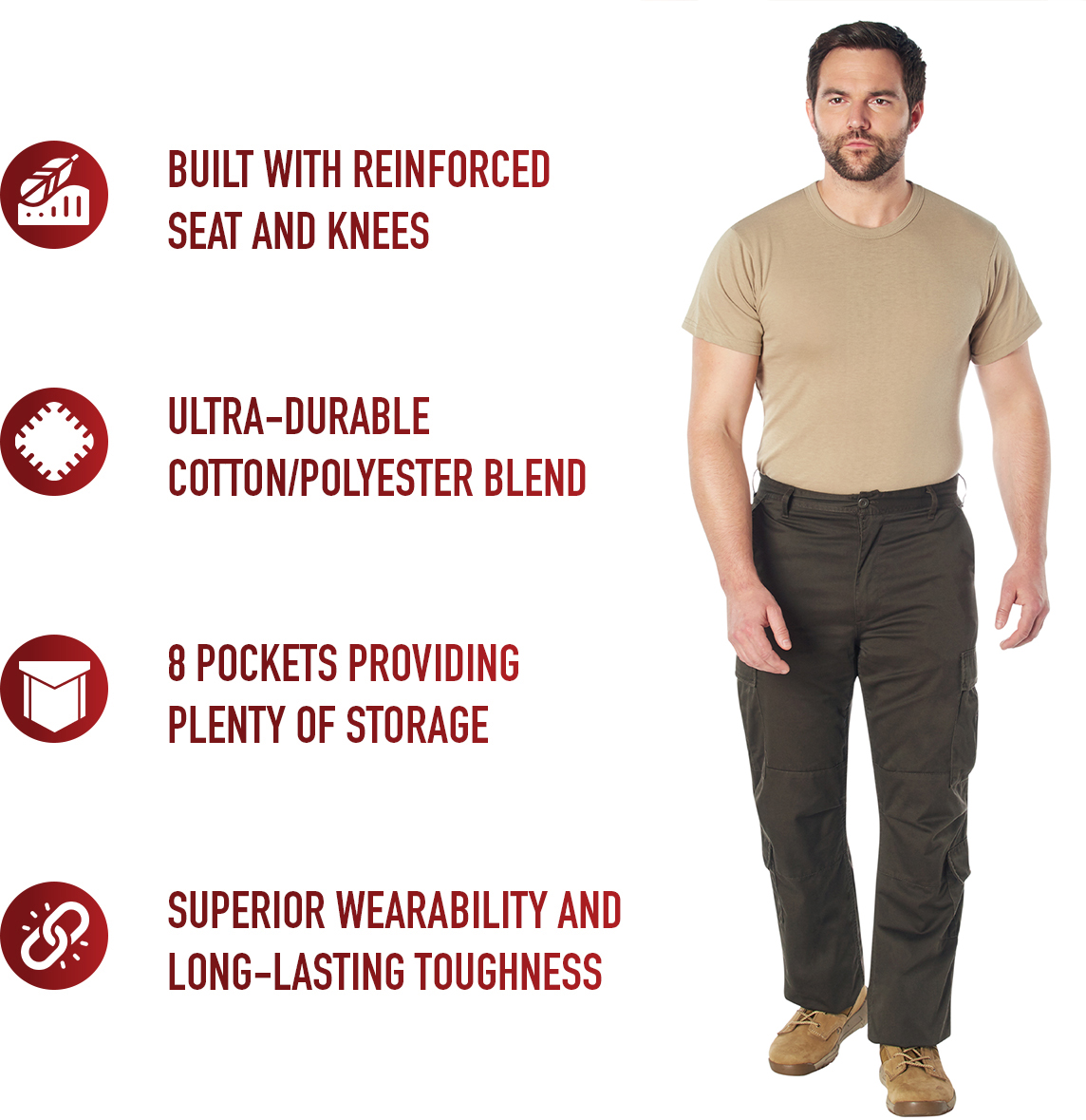 | Product | Brown - Tactical Paratrooper Pants BDU Cargo Fatigues - Heavyweight Poly/Cotton - Zipper Fly - Relaxed Fit |