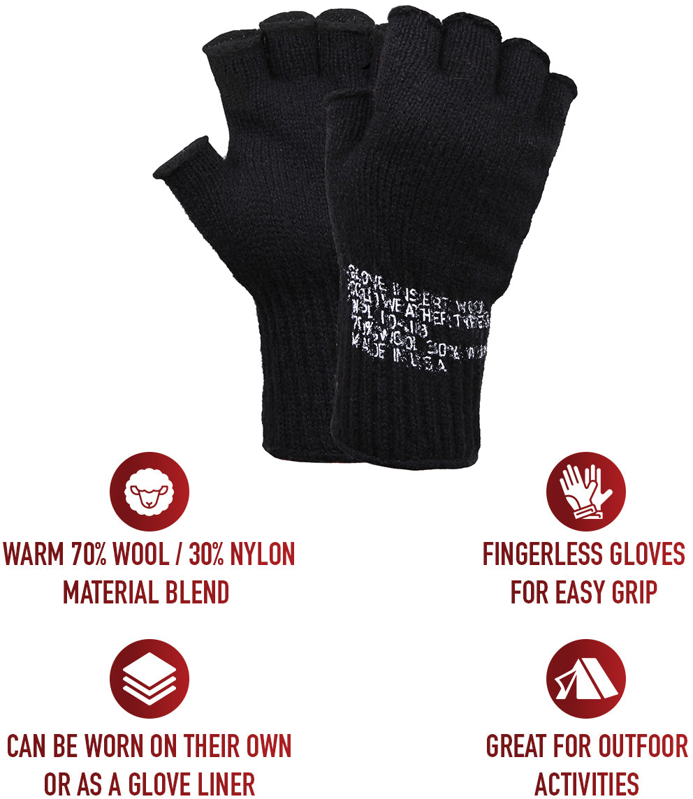 | Product | Black - Genuine GI Fingerless Gloves - Wool Nylon USA Made |