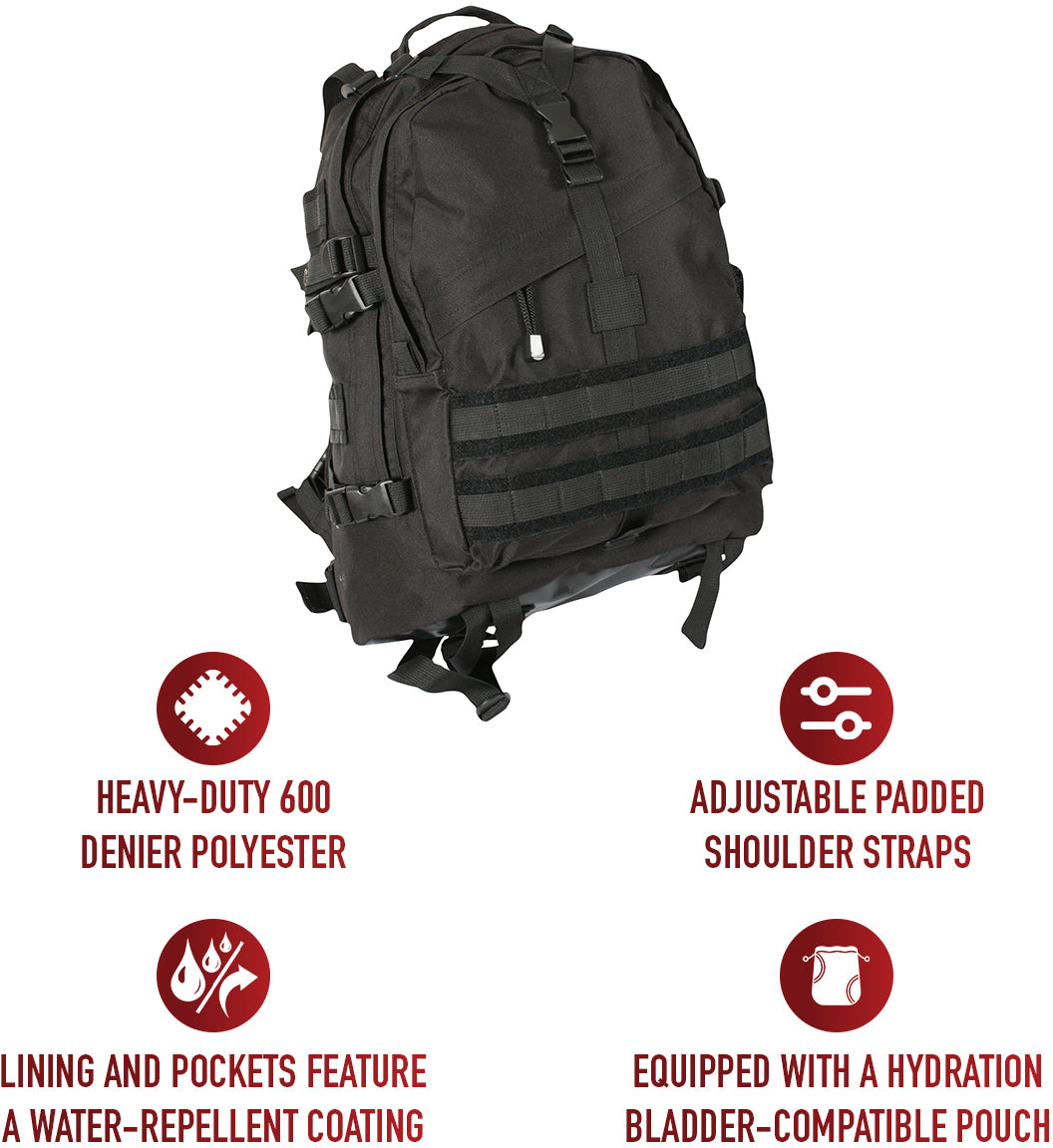 | Product | Black - MOLLE Tactical Large Transport Pack - Rugged Army Backpack |