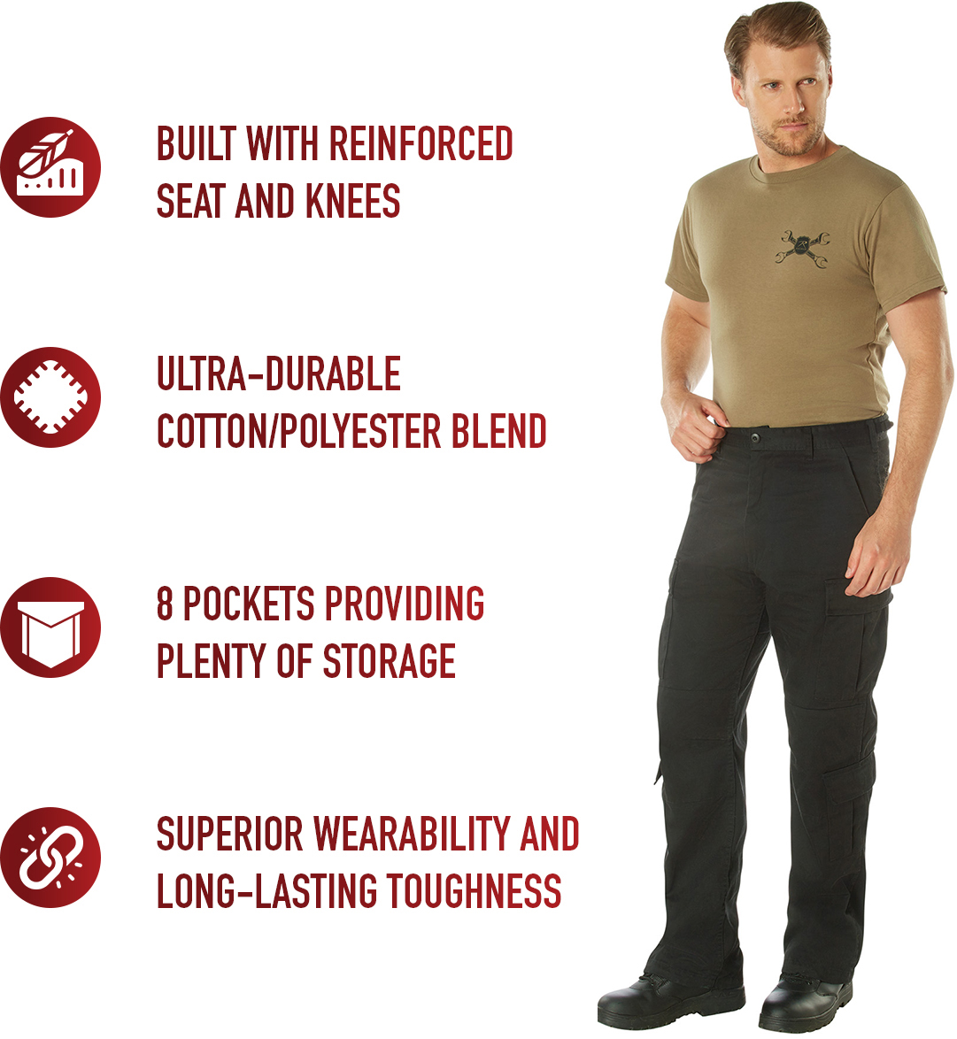 | Product | Black - Tactical Paratrooper Pants BDU Cargo Fatigues - Heavyweight Poly/Cotton - Zipper Fly - Relaxed Fit |