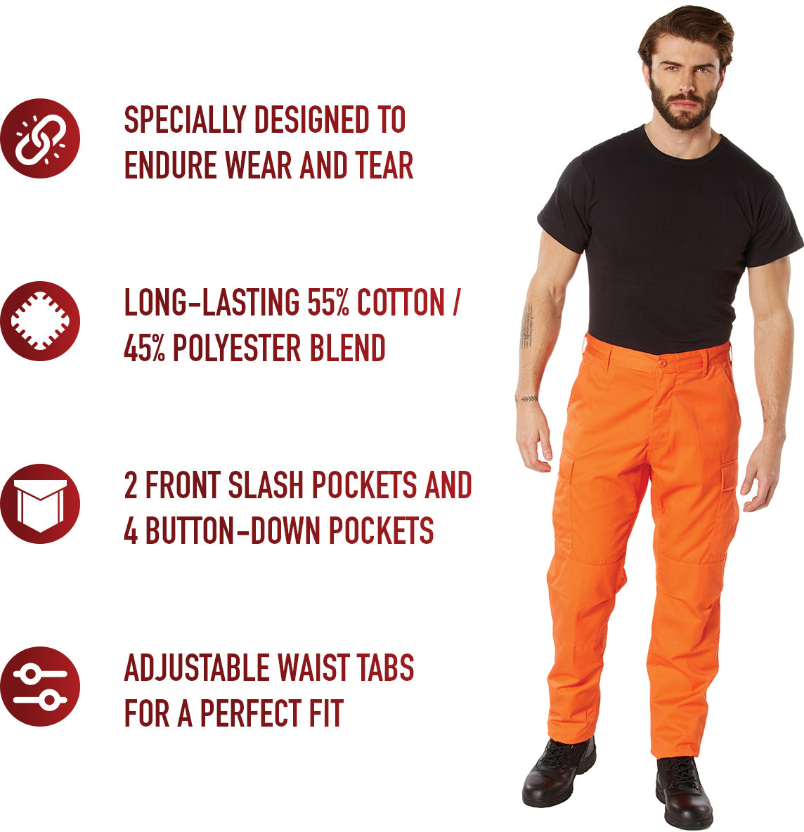 | Product | Blaze Orange - Tactical BDU Pants Cargo Fatigues - Poly/Cotton Twill - Button Fly |