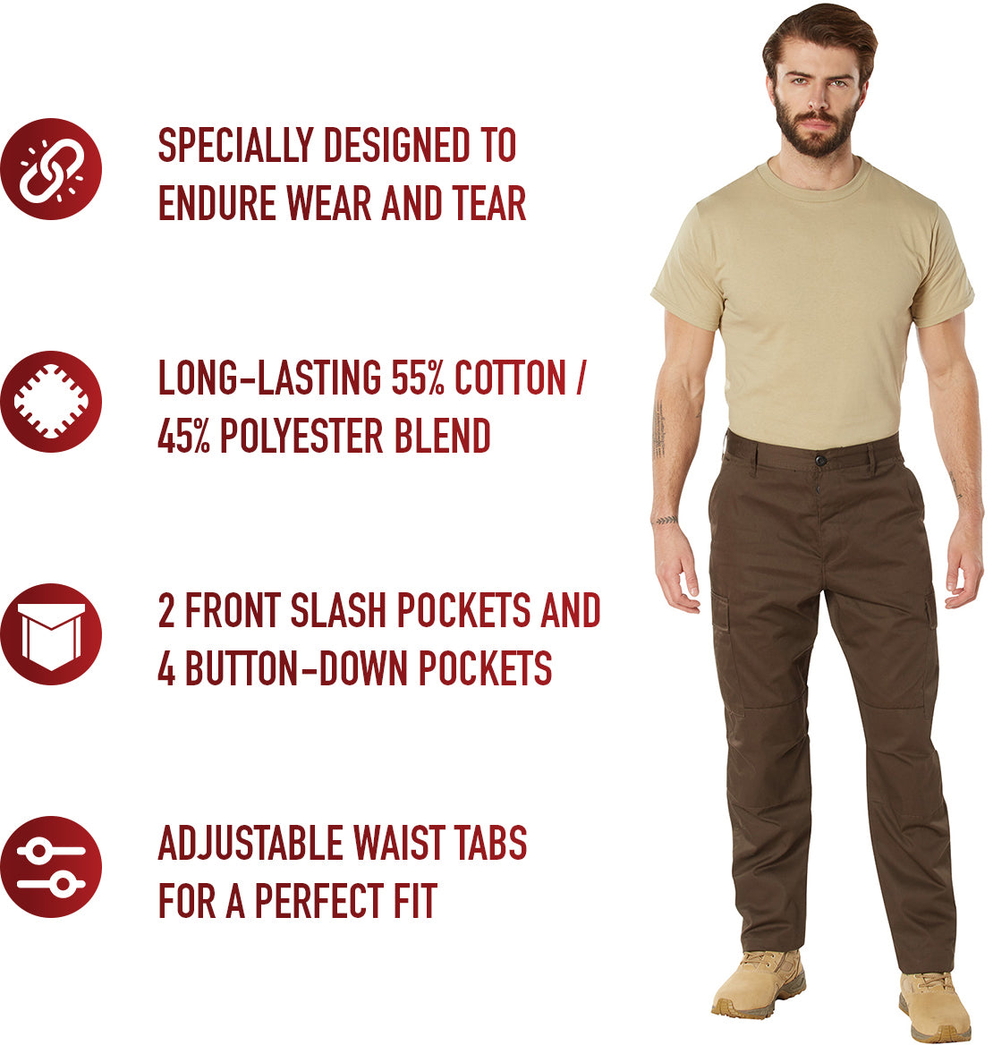 | Product | Brown - Tactical BDU Pants Cargo Fatigues - Poly/Cotton Twill - Button Fly |