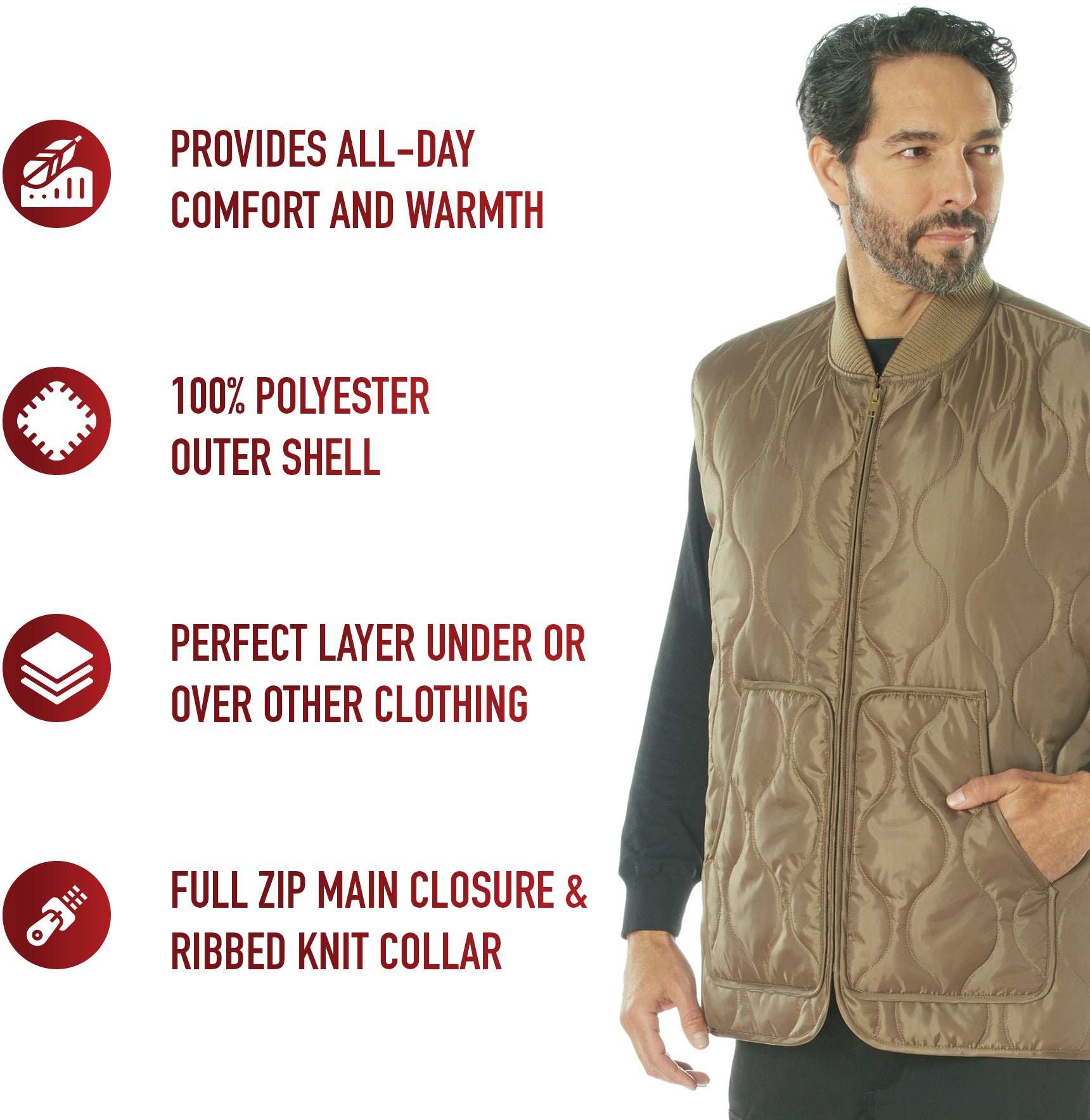 | Product | Coyote Brown - Quilted Woobie Vest - Lightweight Insulated Outdoors Vest - Polyester |