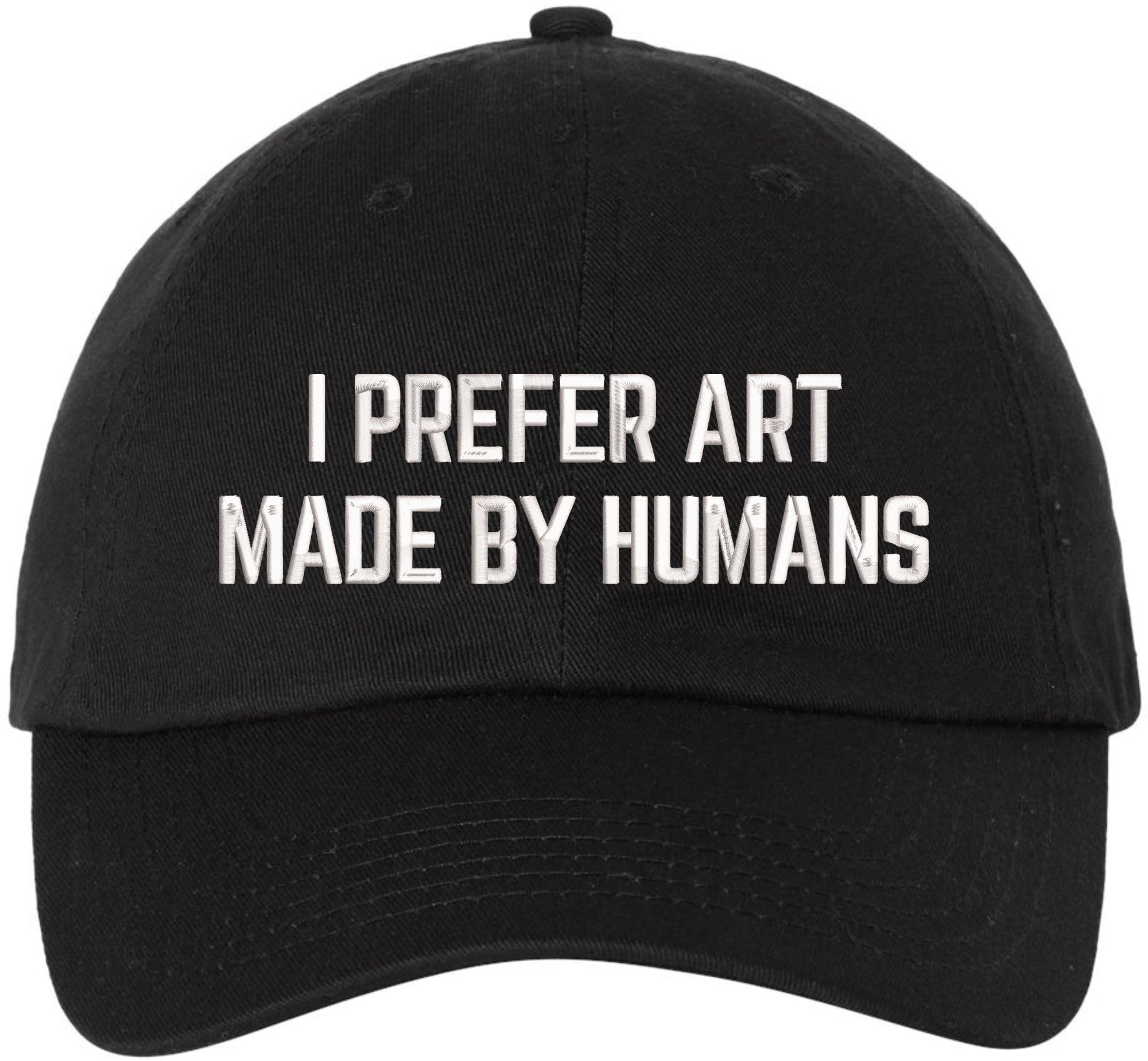 | Product | I Prefer Art Made By Humans Embroidered Dad Hat | AI-Free Creativity Artistic Statement Baseball Cap |