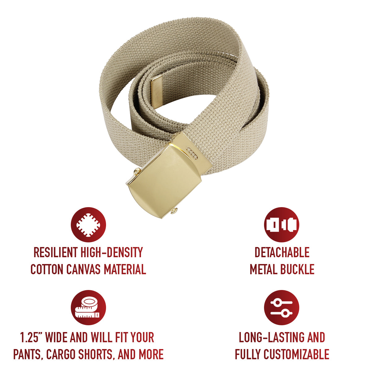 | Product | Khaki - Military Web Belt with Gold Brass Buckle |