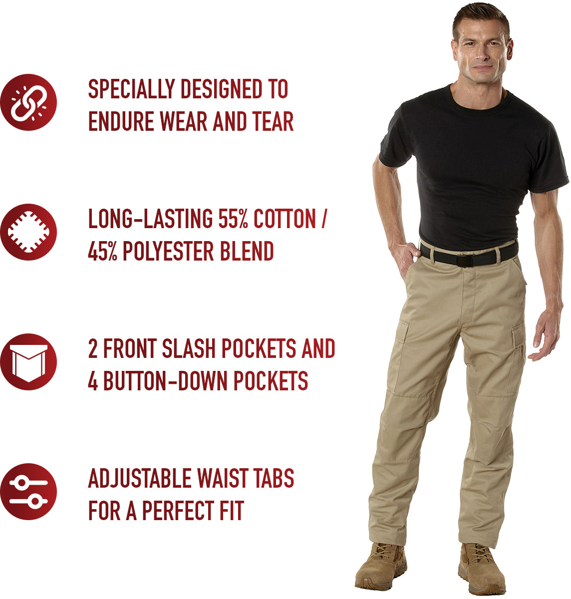 | Product | Khaki - Tactical BDU Pants Cargo Fatigues - Poly/Cotton Twill - Button Fly |