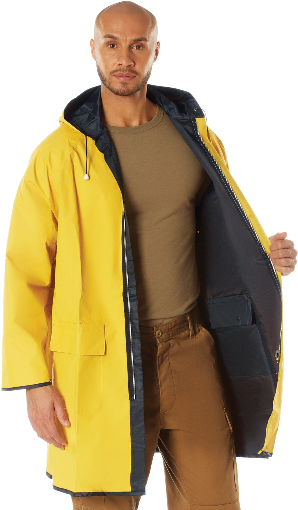 | Product | Navy Blue To Yellow - Reversible Mid Length Rain Parka |