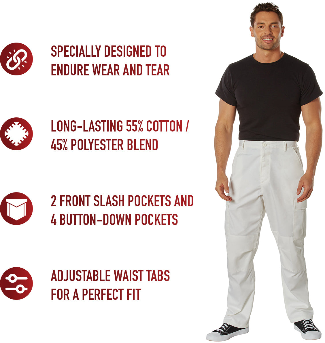 | Product | Off White - Tactical BDU Pants Cargo Fatigues - Poly/Cotton Twill - Button Fly |