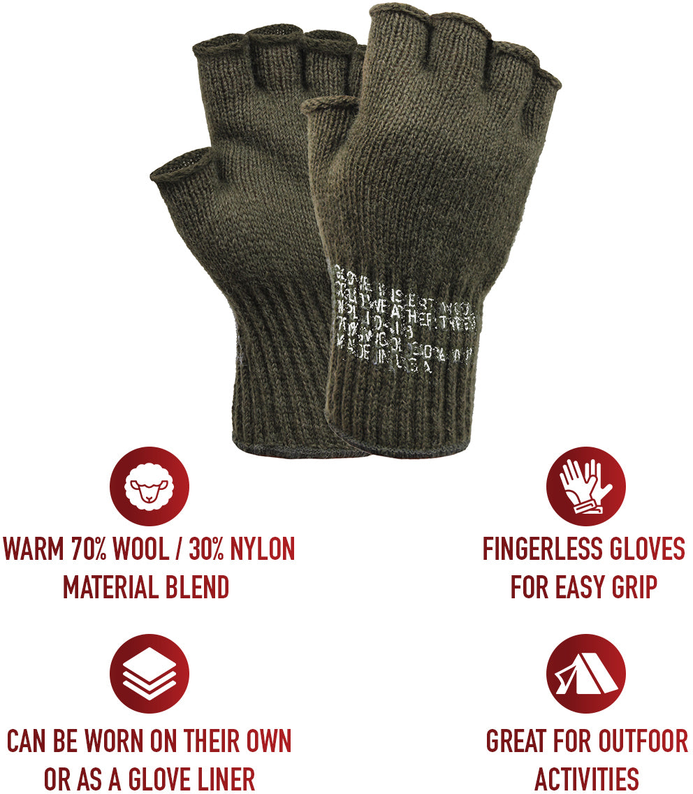 | Product | Olive Drab - Genuine GI Fingerless Gloves - Wool Nylon USA Made |