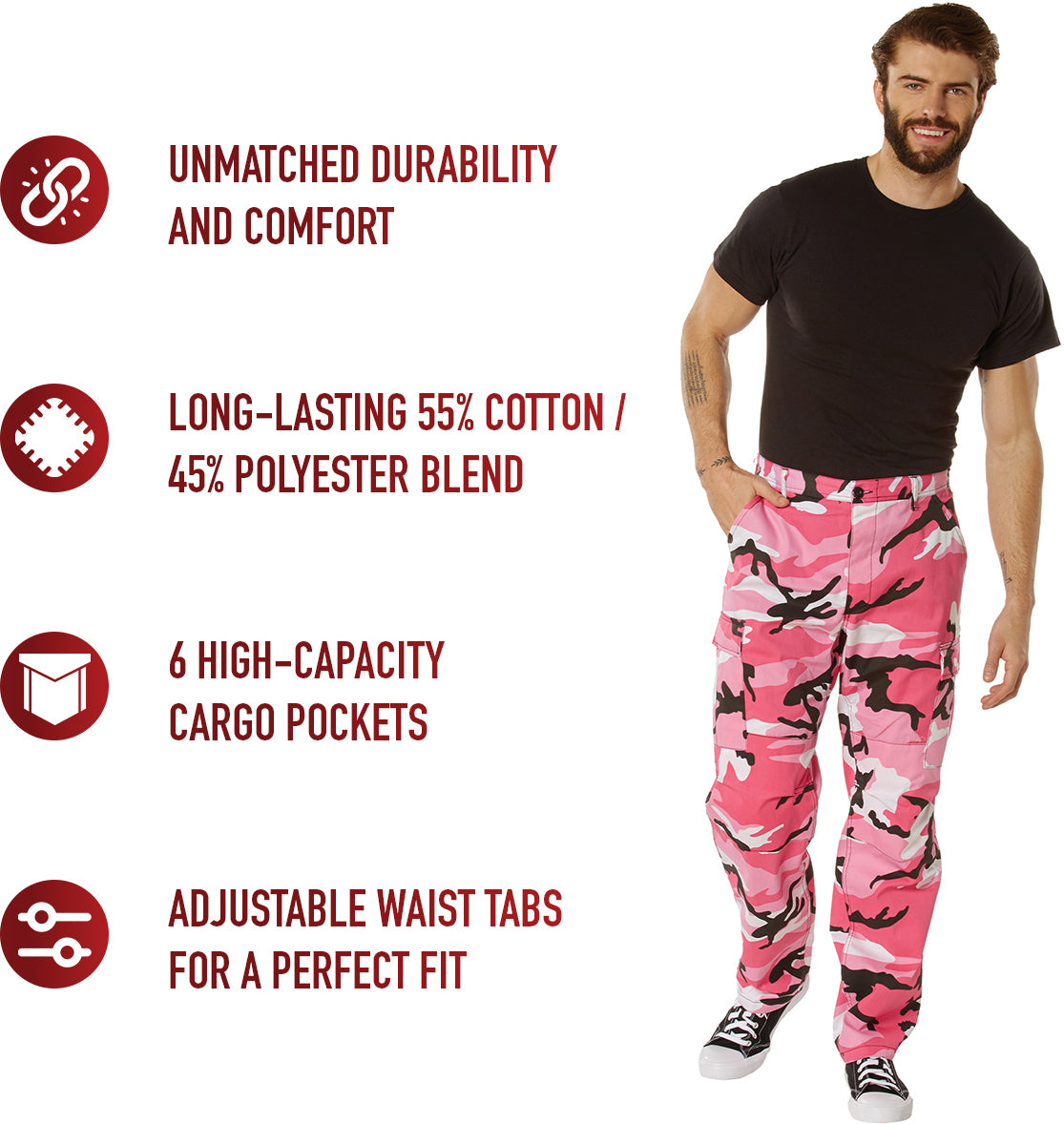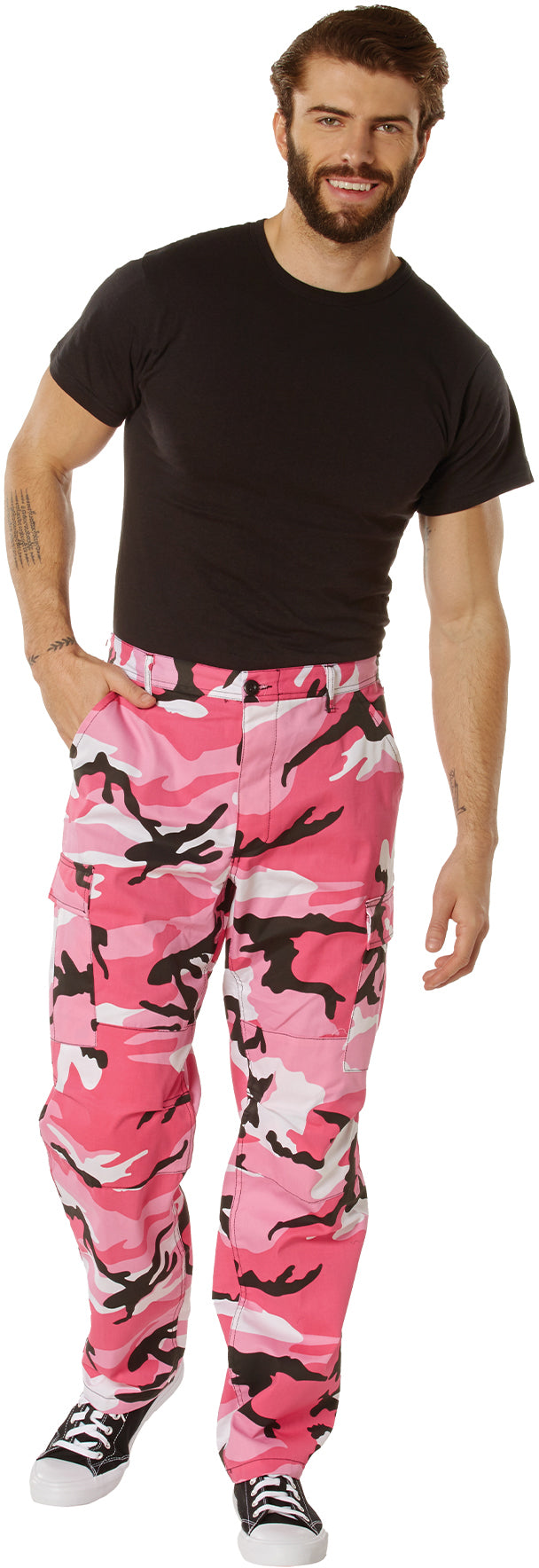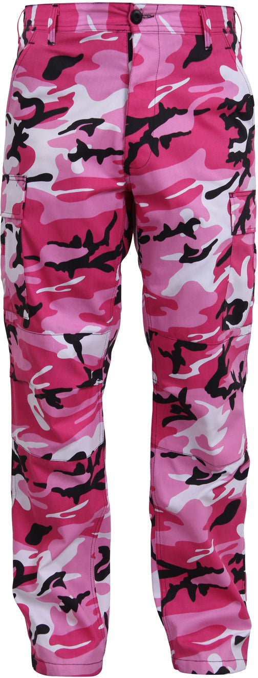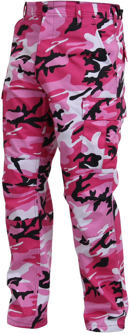 The BDU (Battle Dress Uniform) trouser is an iconic pair of pants, once used by the US military and many others. The BDU trousers are worn today as a fashion statement, for sports such as air soft and paintball, for use by law enforcement personnel and a wide range of military's. The pink camo cotton / polyester battle dress uniform pants are comfortable enough for casual pants or as a tactical uniform.