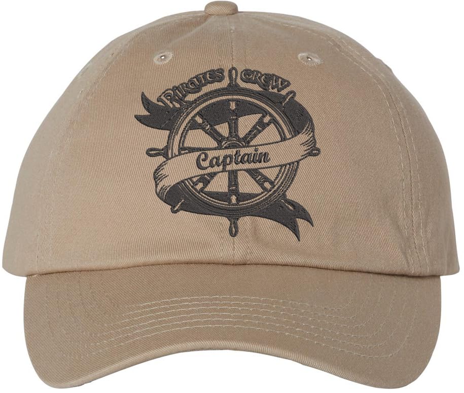 | Product | Pirates Crew Captain Embroidered Dad Cap - Ship Wheel Sailor Fun Adventure Cotton Unstructured Baseball Hat |