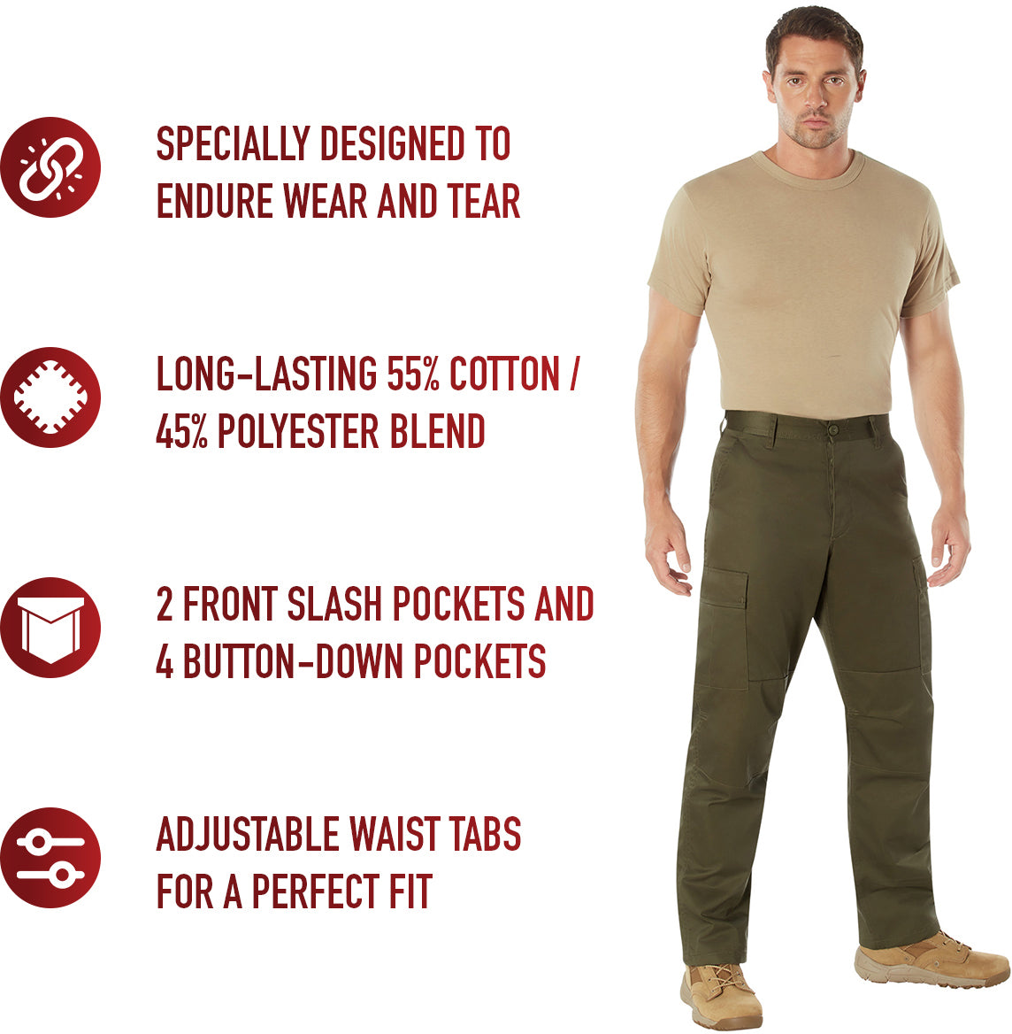 | Product | Ranger Green - Tactical BDU Pants Cargo Fatigues - Poly/Cotton Twill - Button Fly |