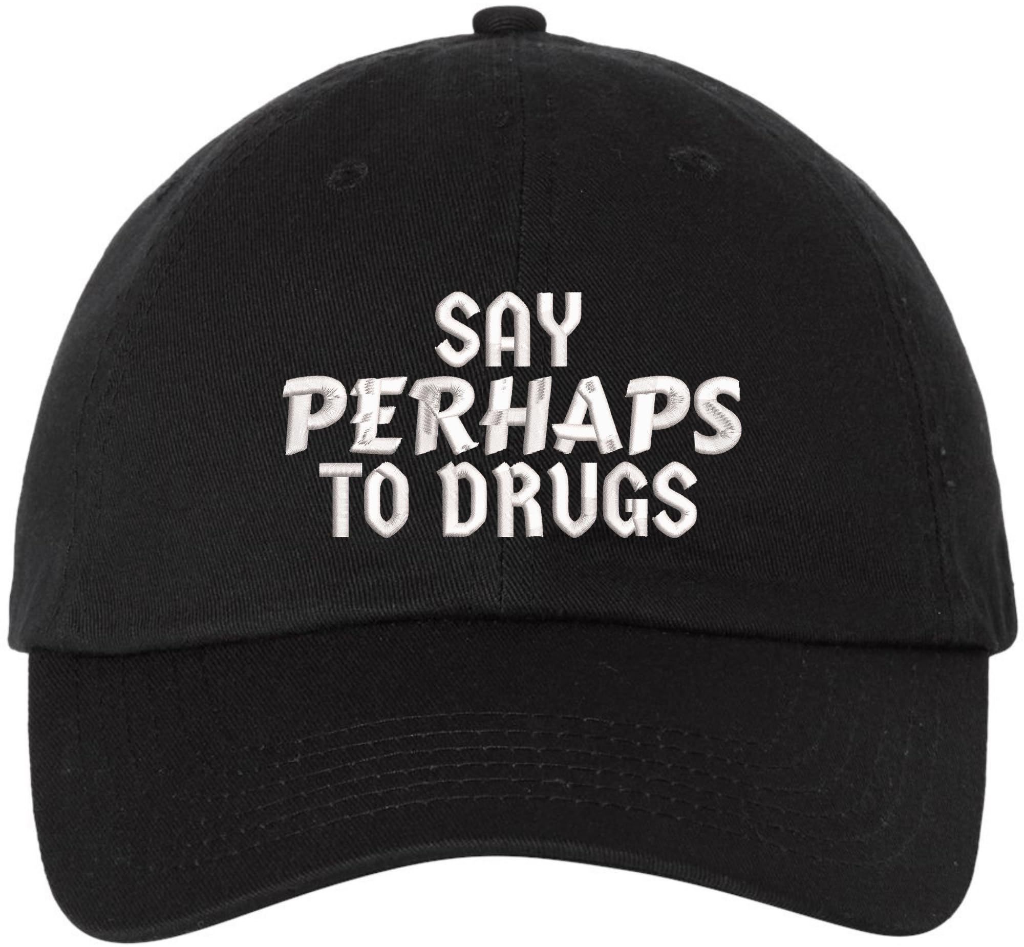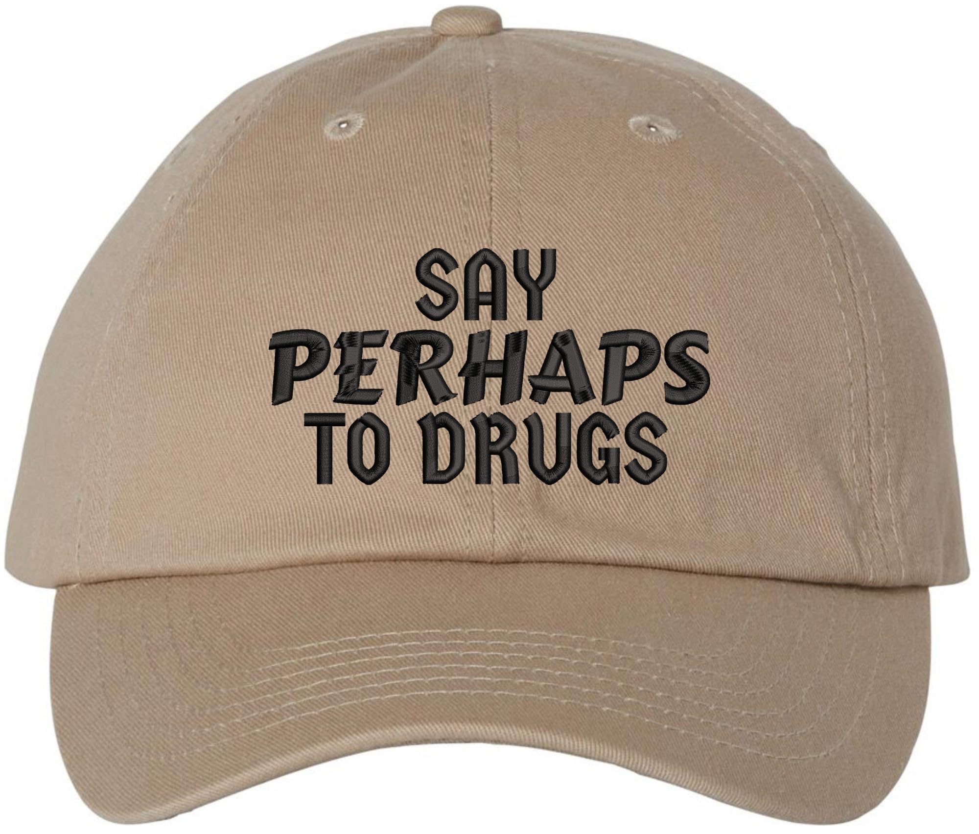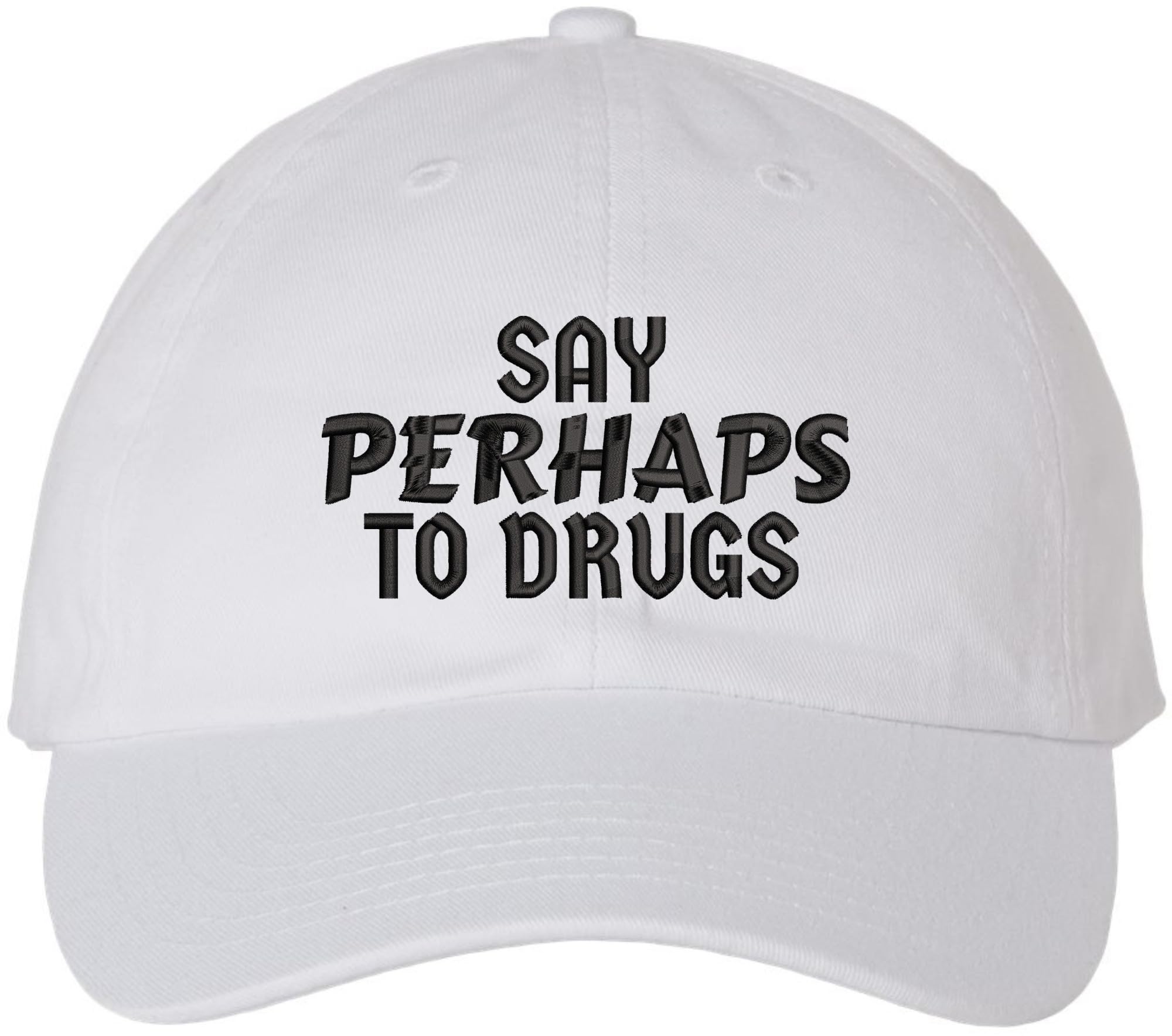 Wholesale Say Perhaps to Drugs Embroidered Dad Hat | Funny Retro Meme Sarcastic Humor Cotton Baseball Cap