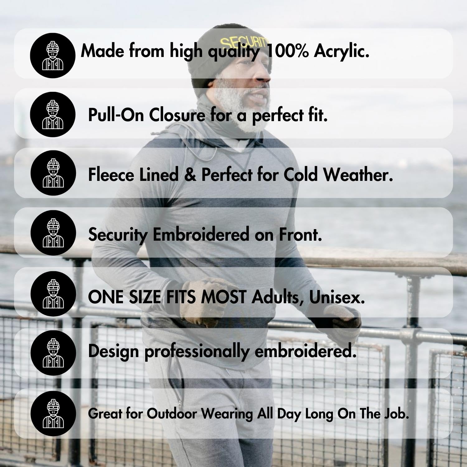 | Product | SECURITY Beanie FLEECE Lined Hat Warm LARGE EMBROIDERY Winter Watch Cap Winter Security Uniform Hat |