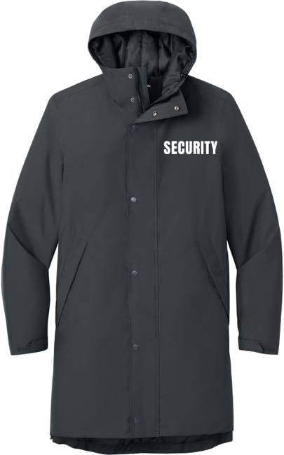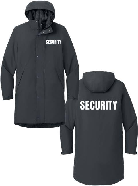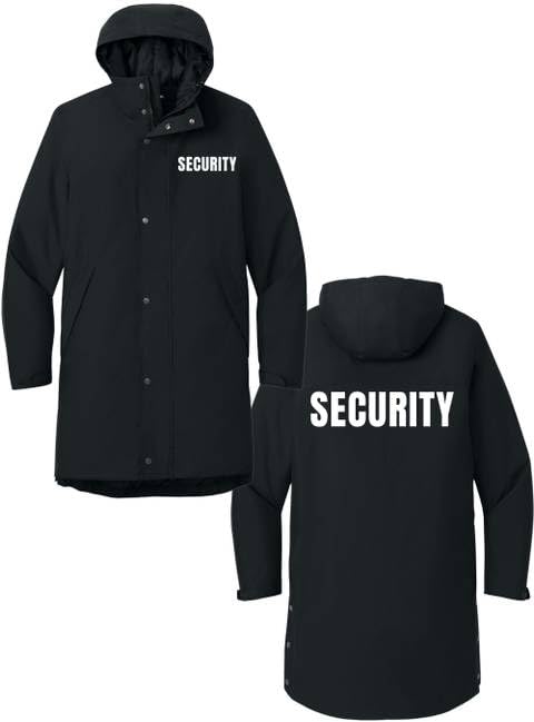 | Product | SECURITY Waterproof Insulated Sideline Parka Jacket Long Rain Coat with Hood (Double Sided Print) |