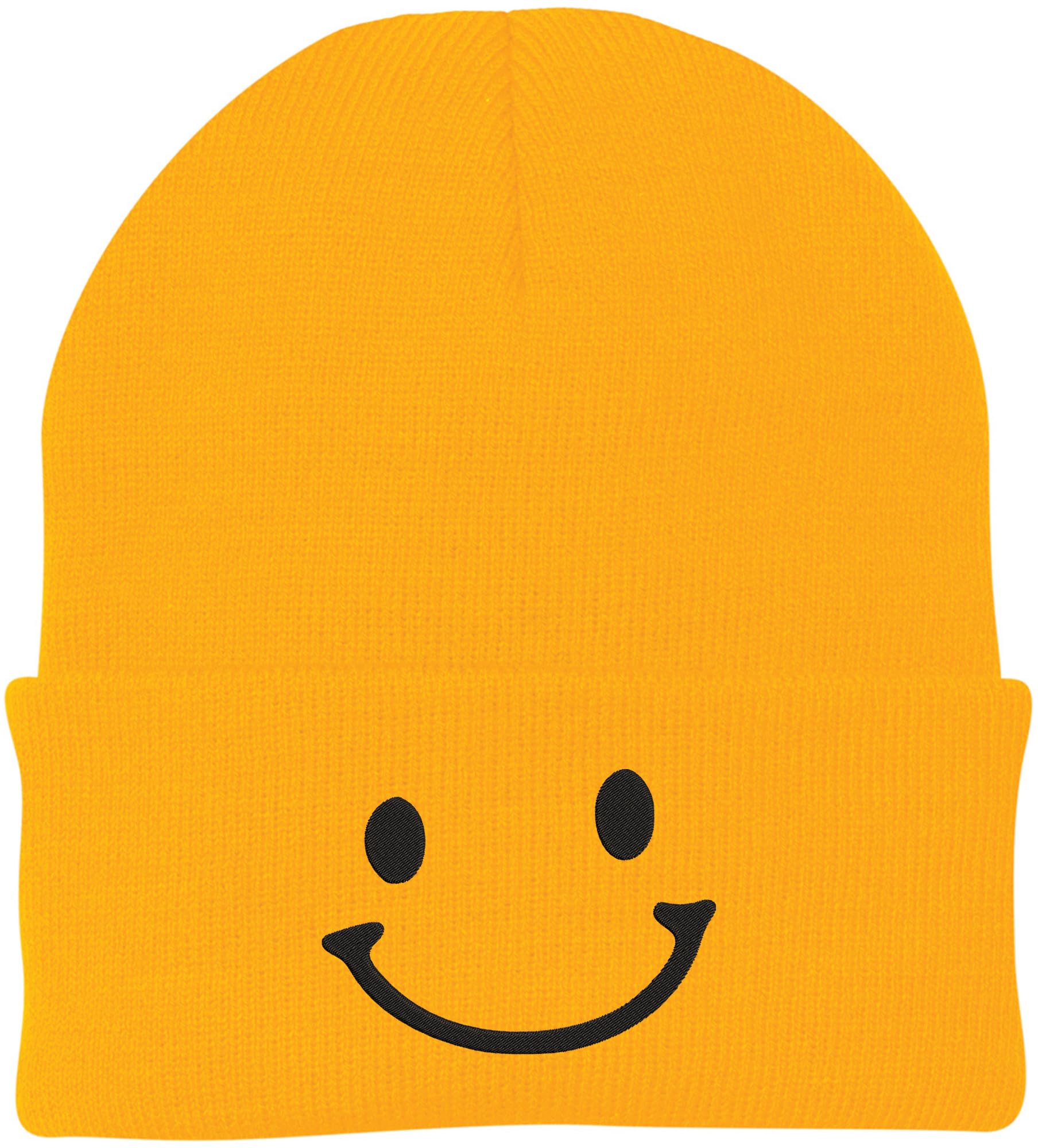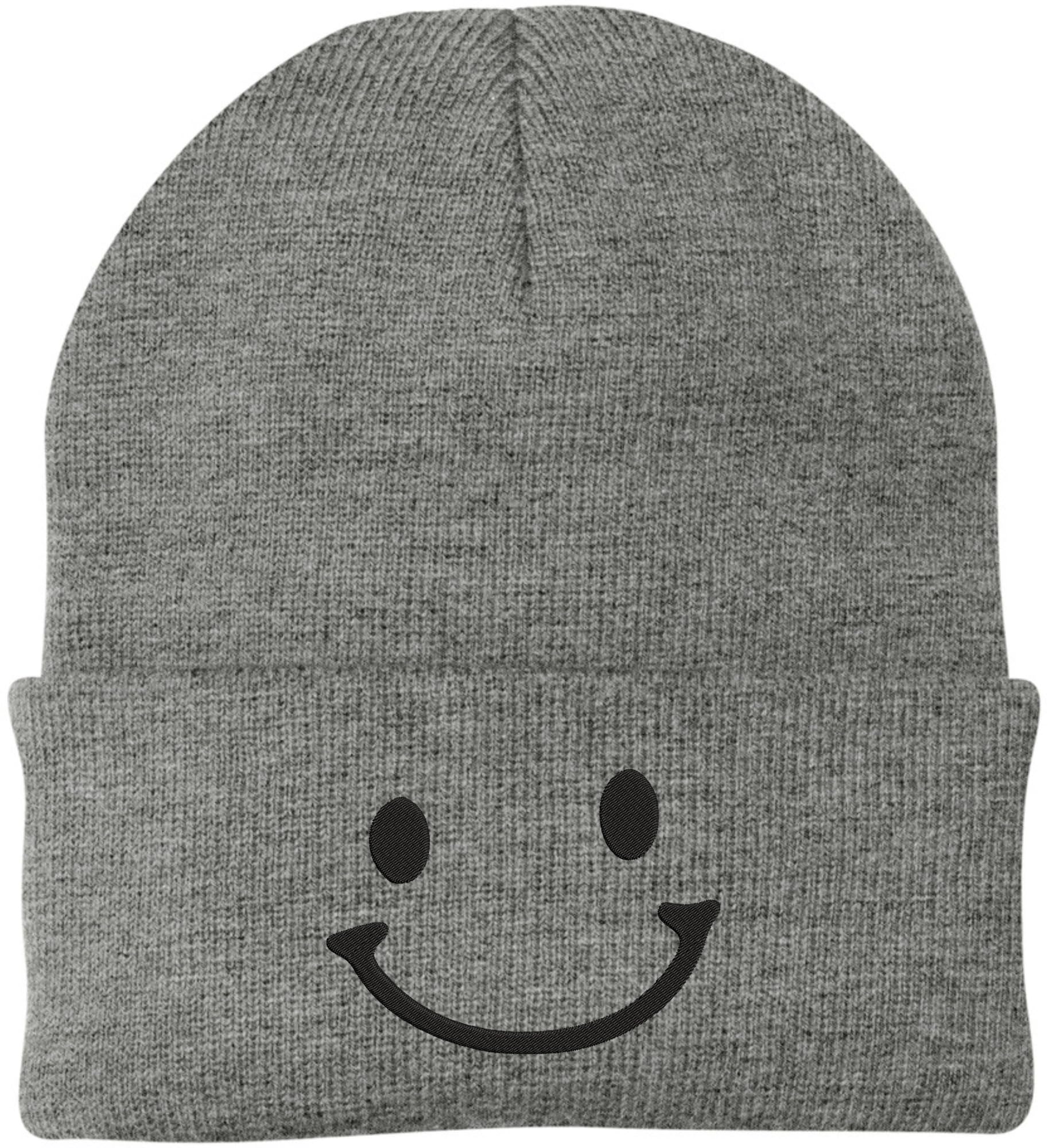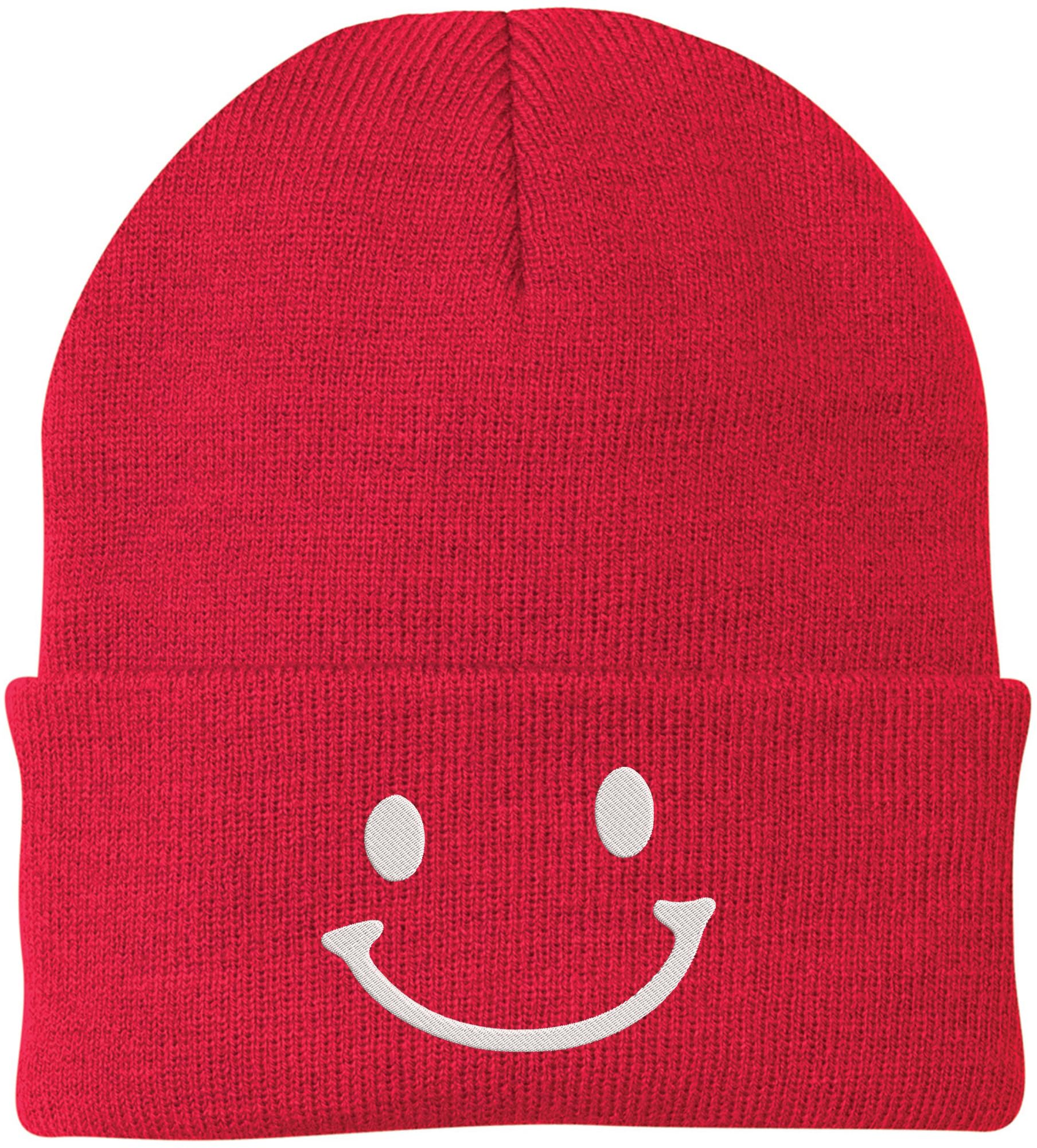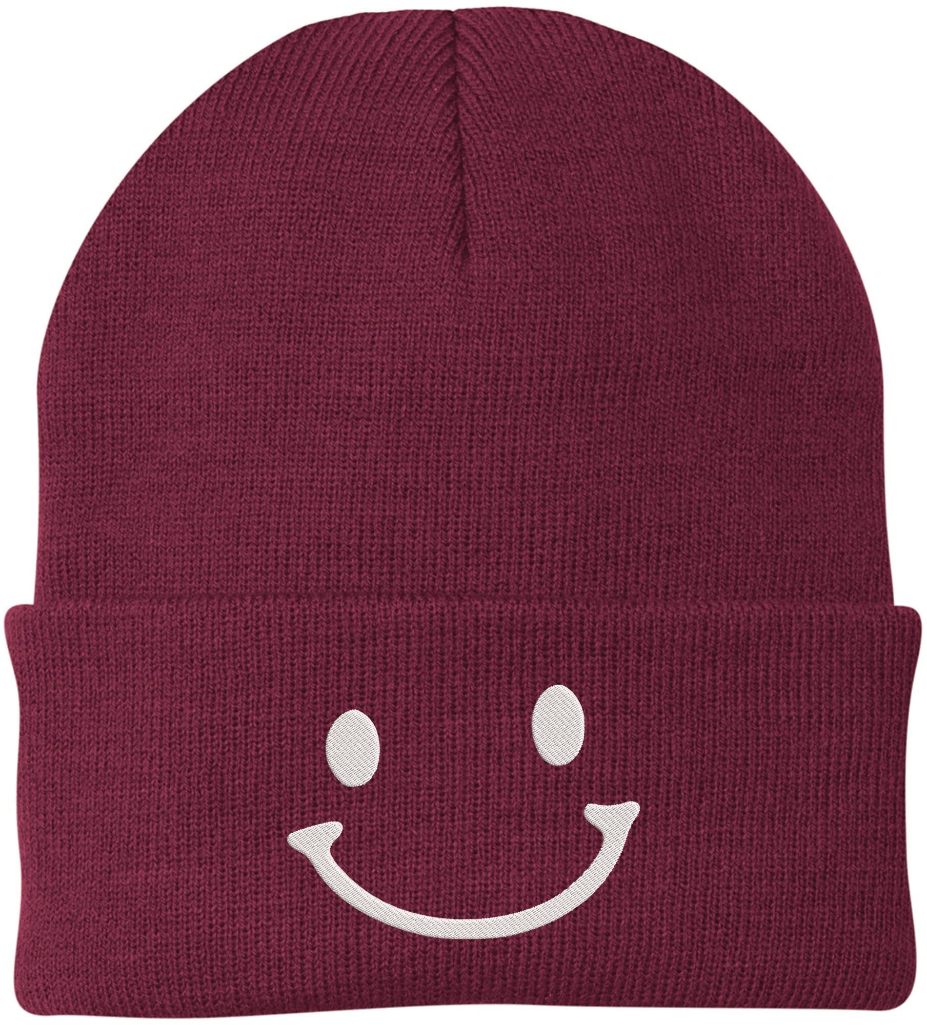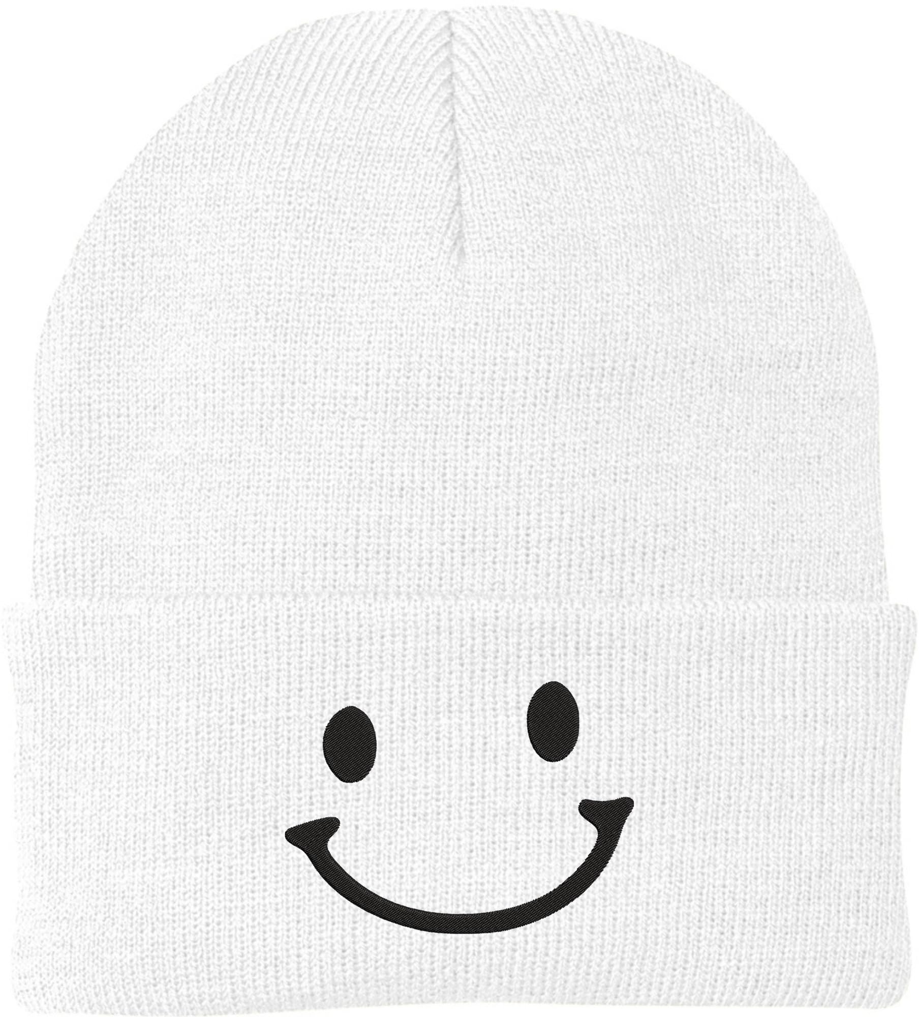 | Product | Smiley Face Outline Embroidered Beanie | Cute Knit Winter Hat | Unisex Warm Cuff Skull Cap for Men & Women |