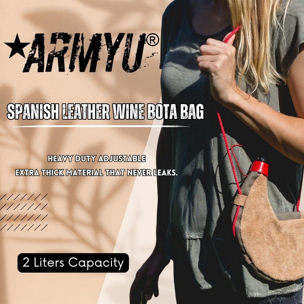 | Product | Spanish Leather Wine Bota – 2L Waterskin Canteen Flask, Traditional Drink Pouch for Wine or Water |