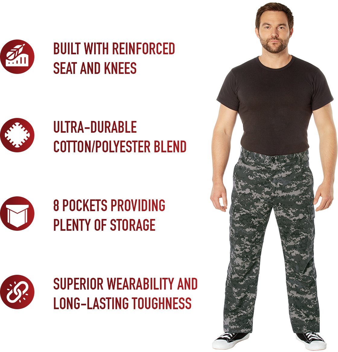 The vintage paratrooper fatigue pants are a military inspired pants, constructed after the BDU (Battle Dress Uniform) pants. The vintage paratrooper fatigue pants are worn today as a fashion statement, for sports such as air soft and paintball, for use by law enforcement personnel and by a wide range of military's. The Subdued Urban Digital polyester / cotton vintage paratrooper fatigue pants are comfortable enough to be worn as casual pants or as part of a tactical uniform.