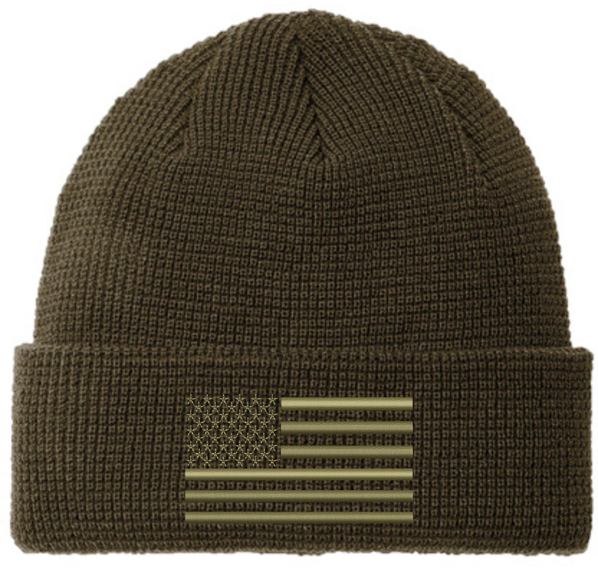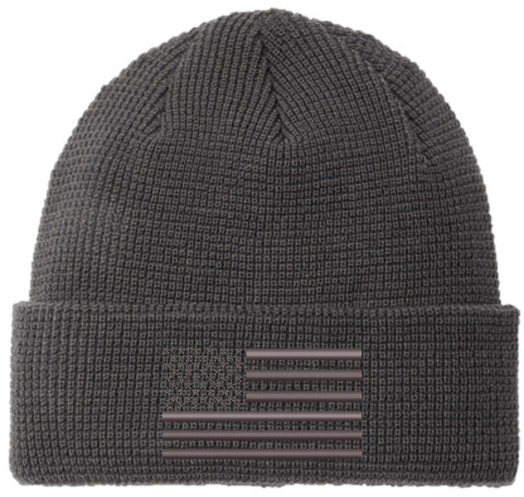 Wholesale Thermal Knit Grid Watch Cap with Embroidered US American Flag, USA Tactical Beanie Winter Hat