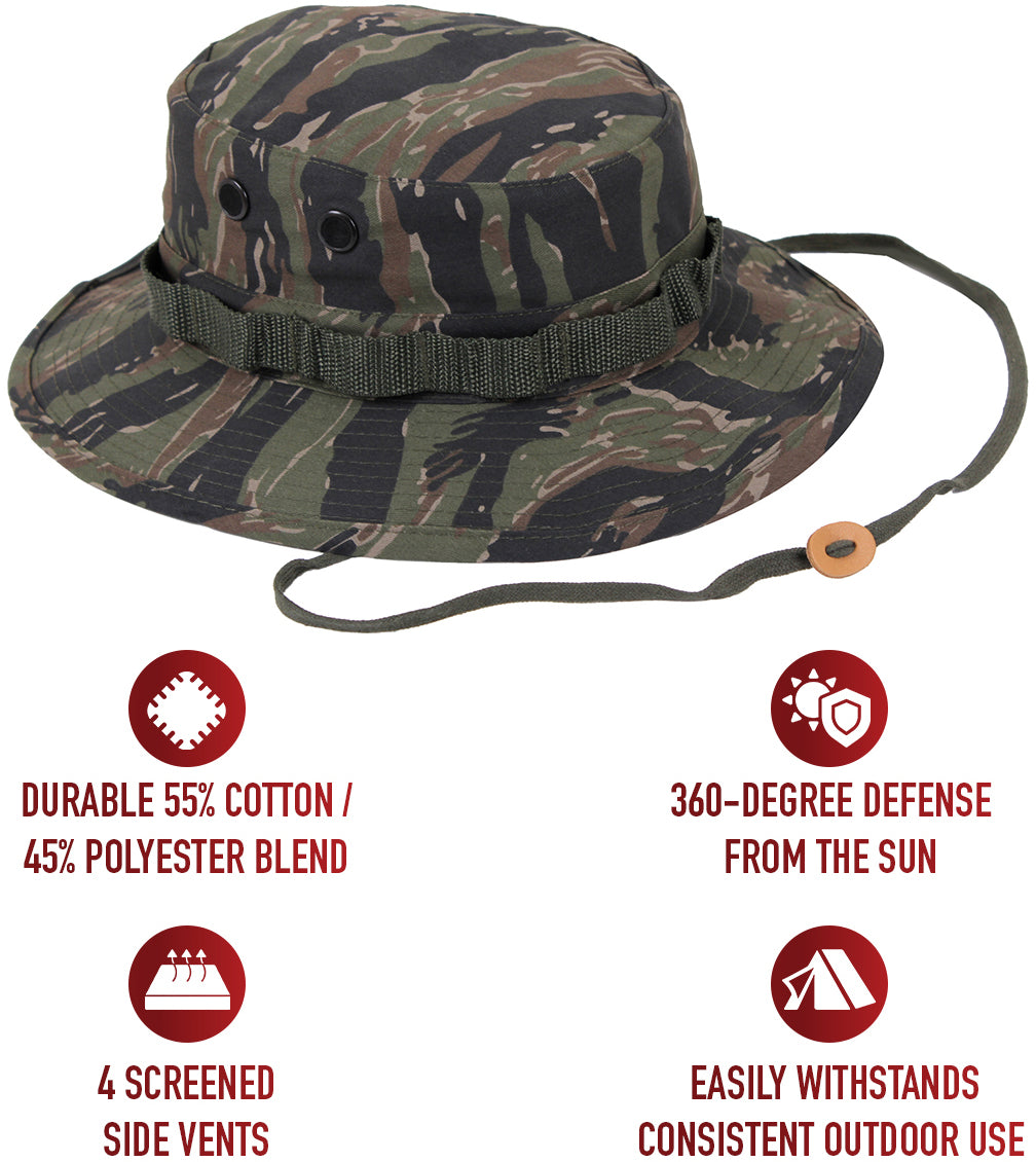 | Product | Tiger Stripe Camouflage - Tactical Military Boonie Hat - Polyester Cotton |