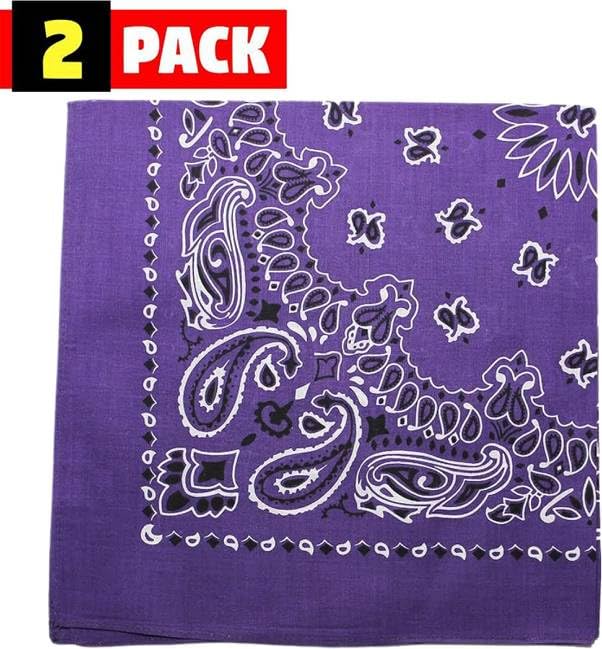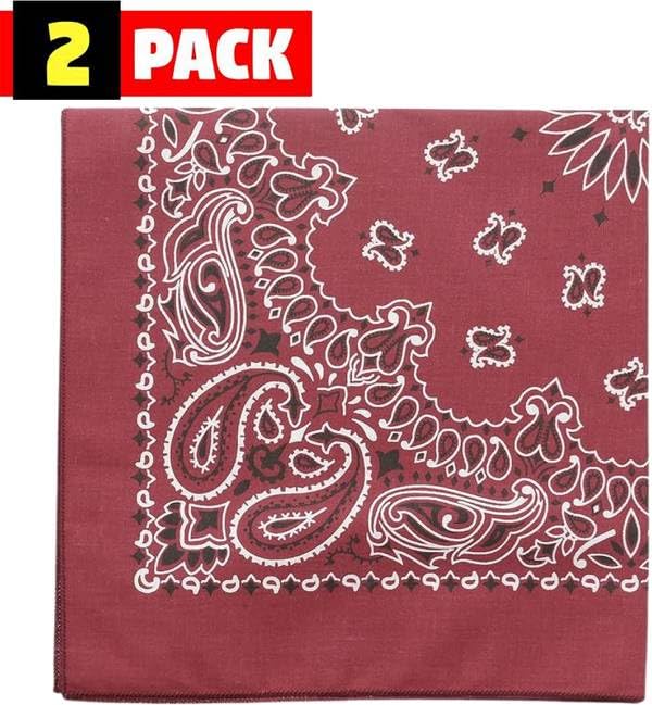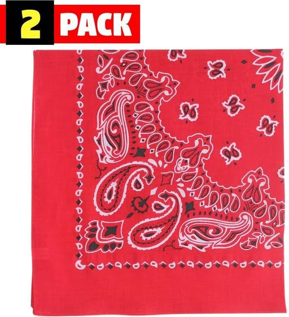 Wholesale Trainmen Paisley Bandana Head Scarf Do-rag 100% Cotton Bandanna Cover 22" x 22", 2 Pack