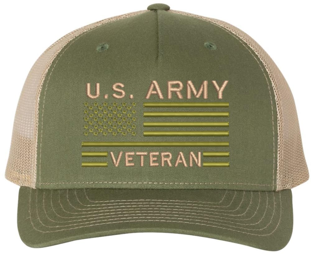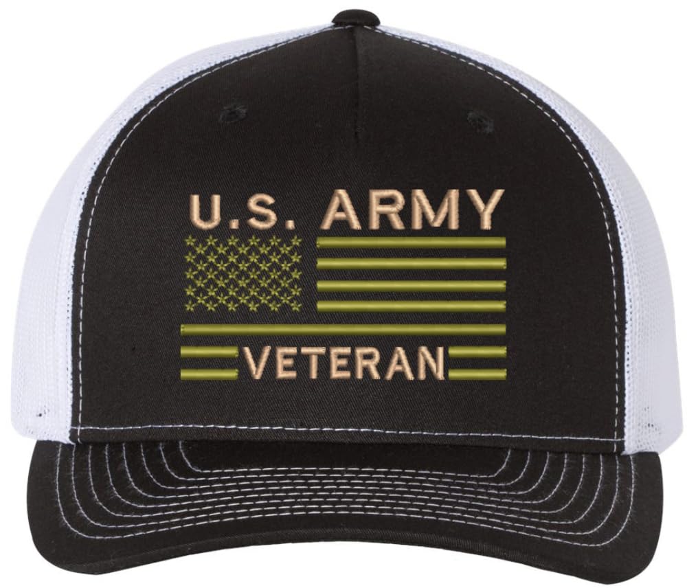 US Army Veteran USA Flag Embroidered Trucker Hat | Structured Mesh Back Military Vet Snap Back Baseball Cap