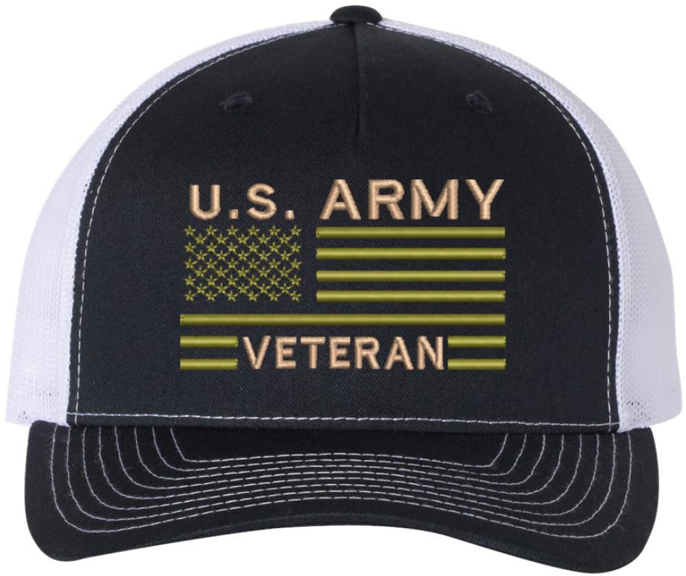 ID: us-army-veteran-usa-flag-embroidered-trucker-hat-structured-mesh-back-military-vet-snap-back-baseball-cap