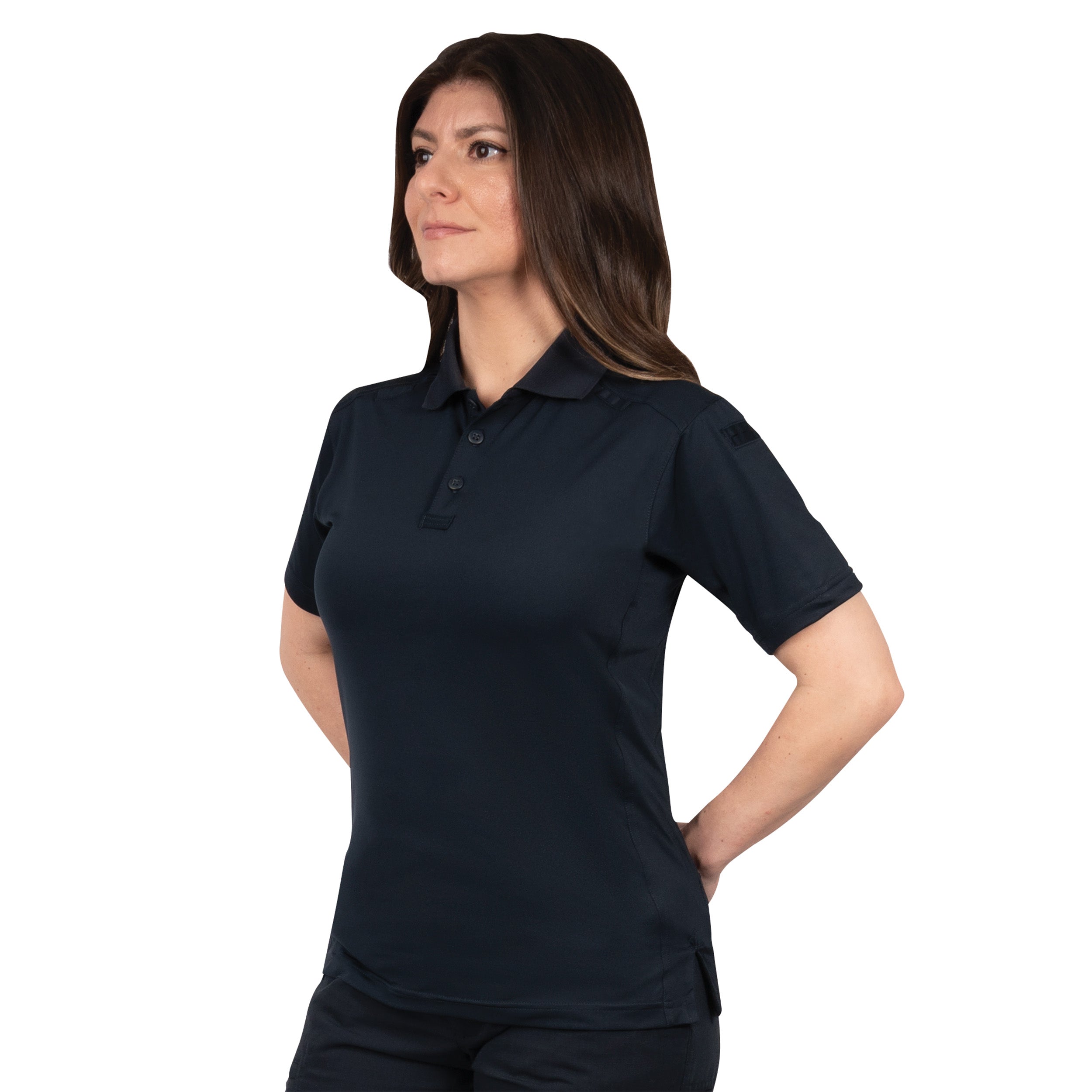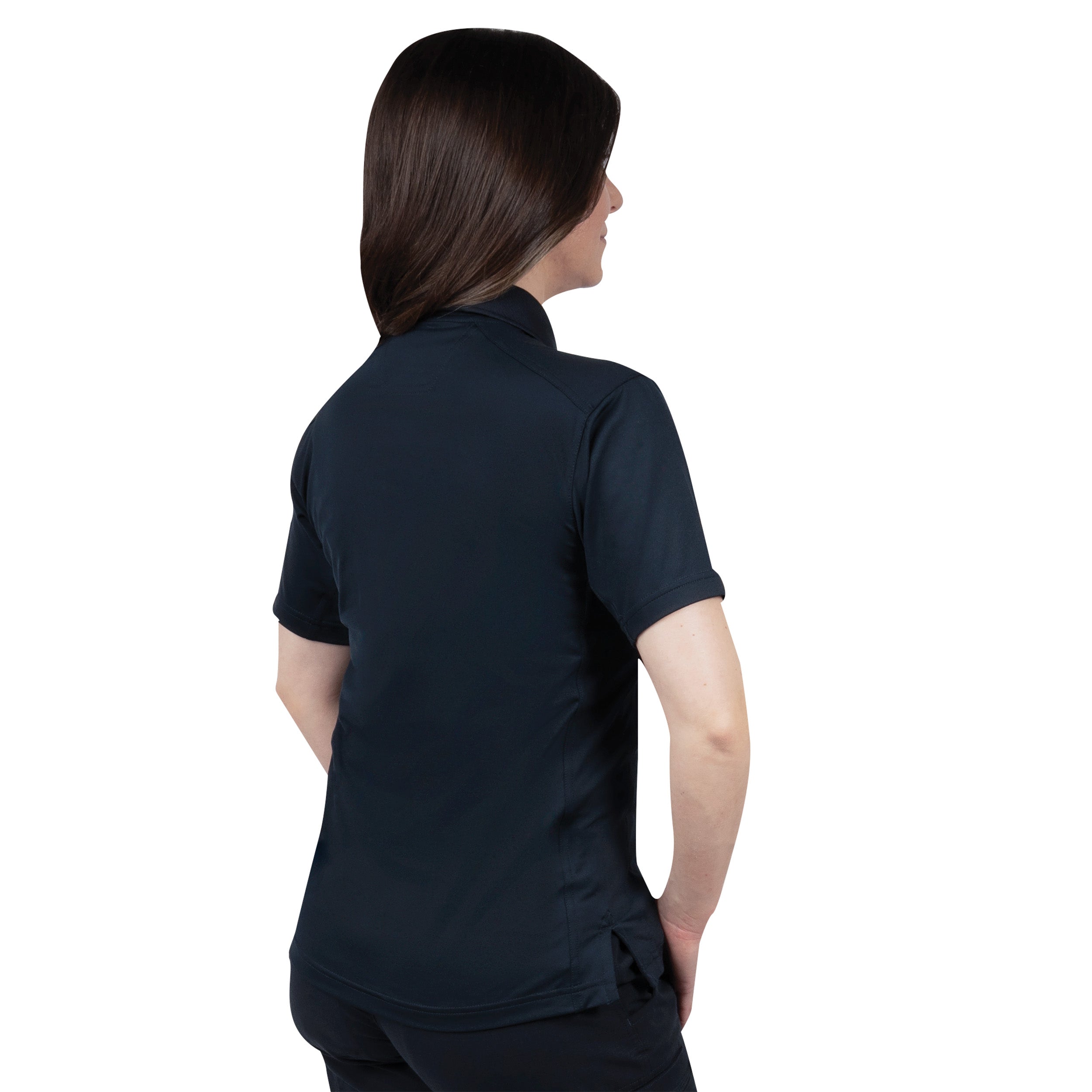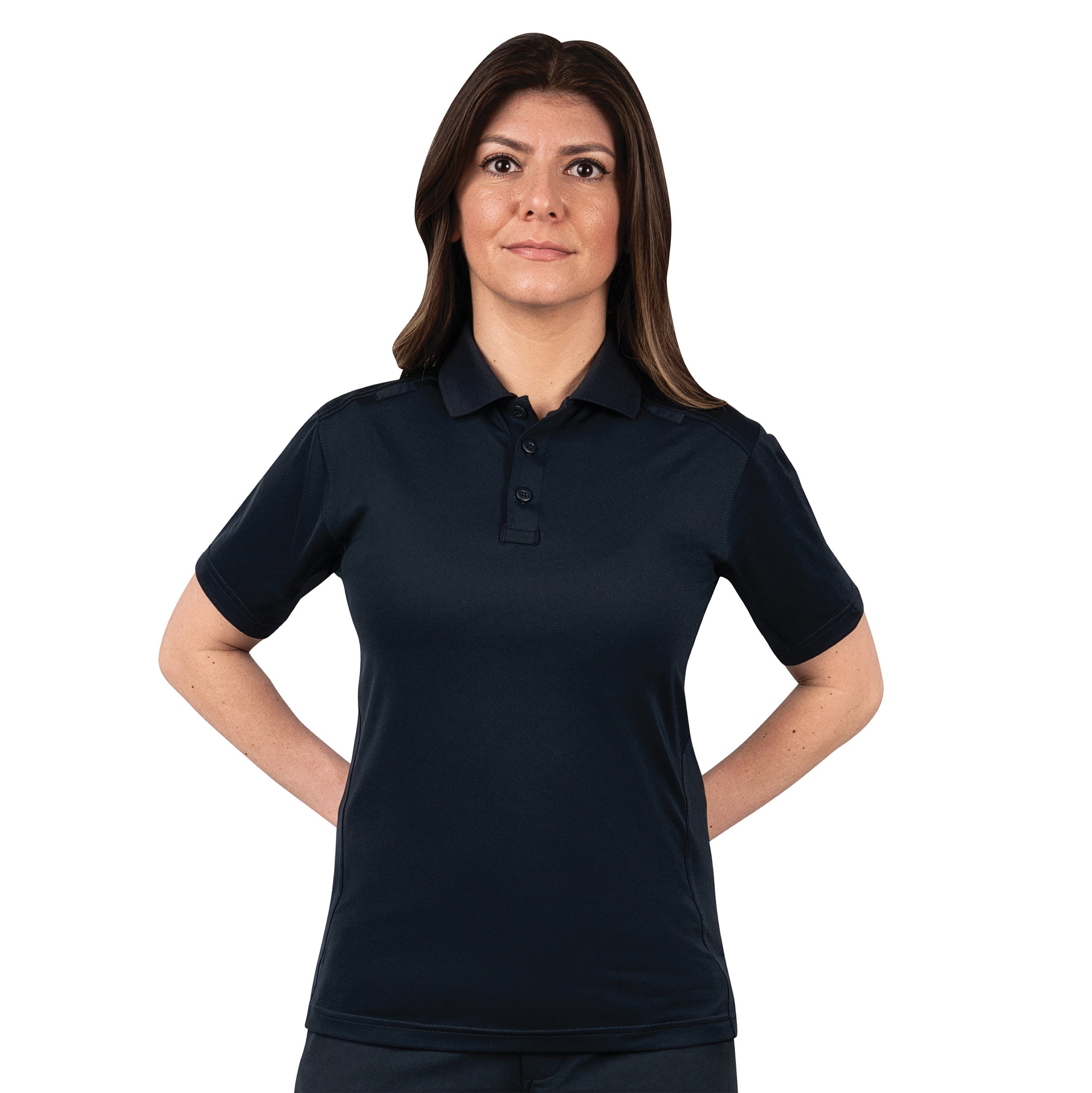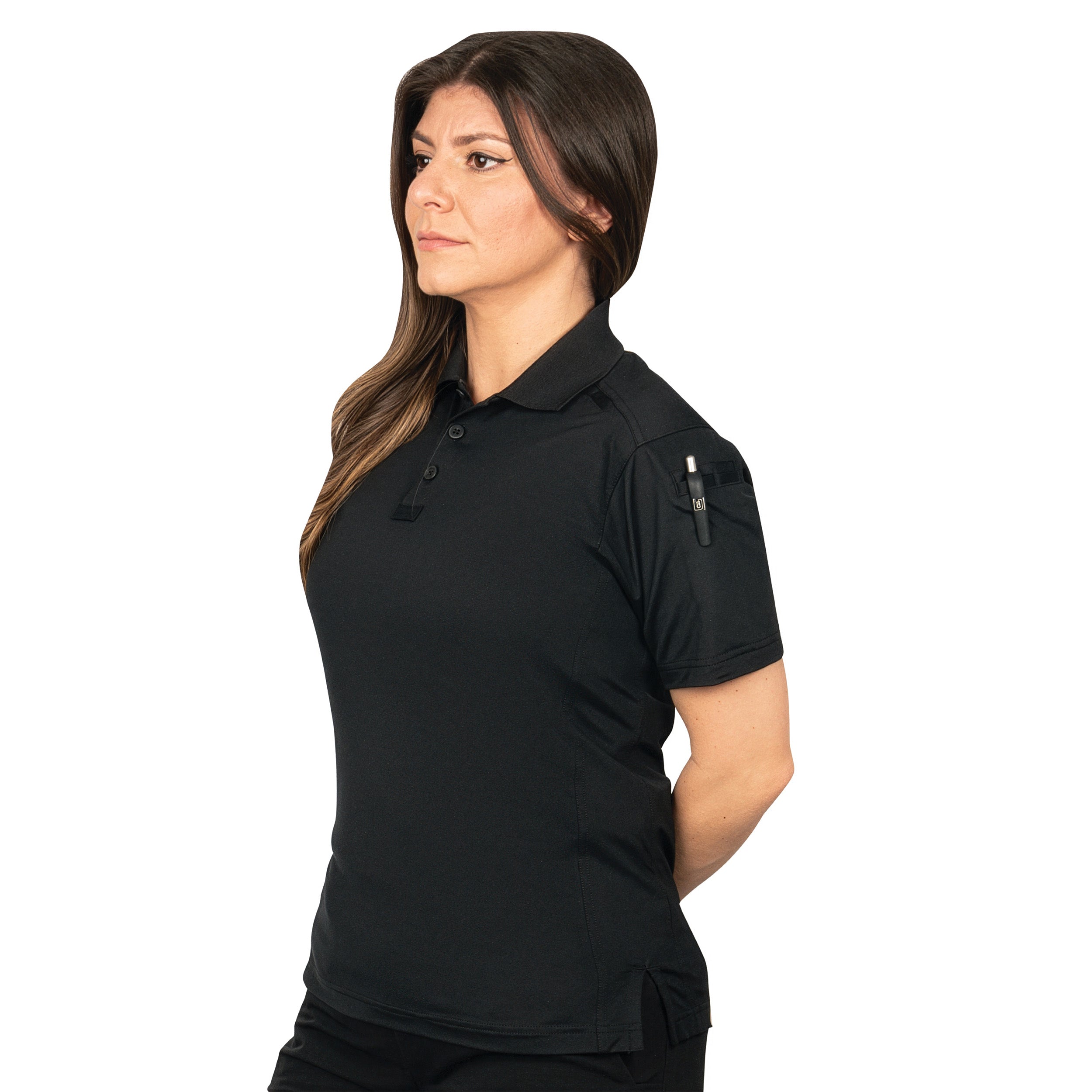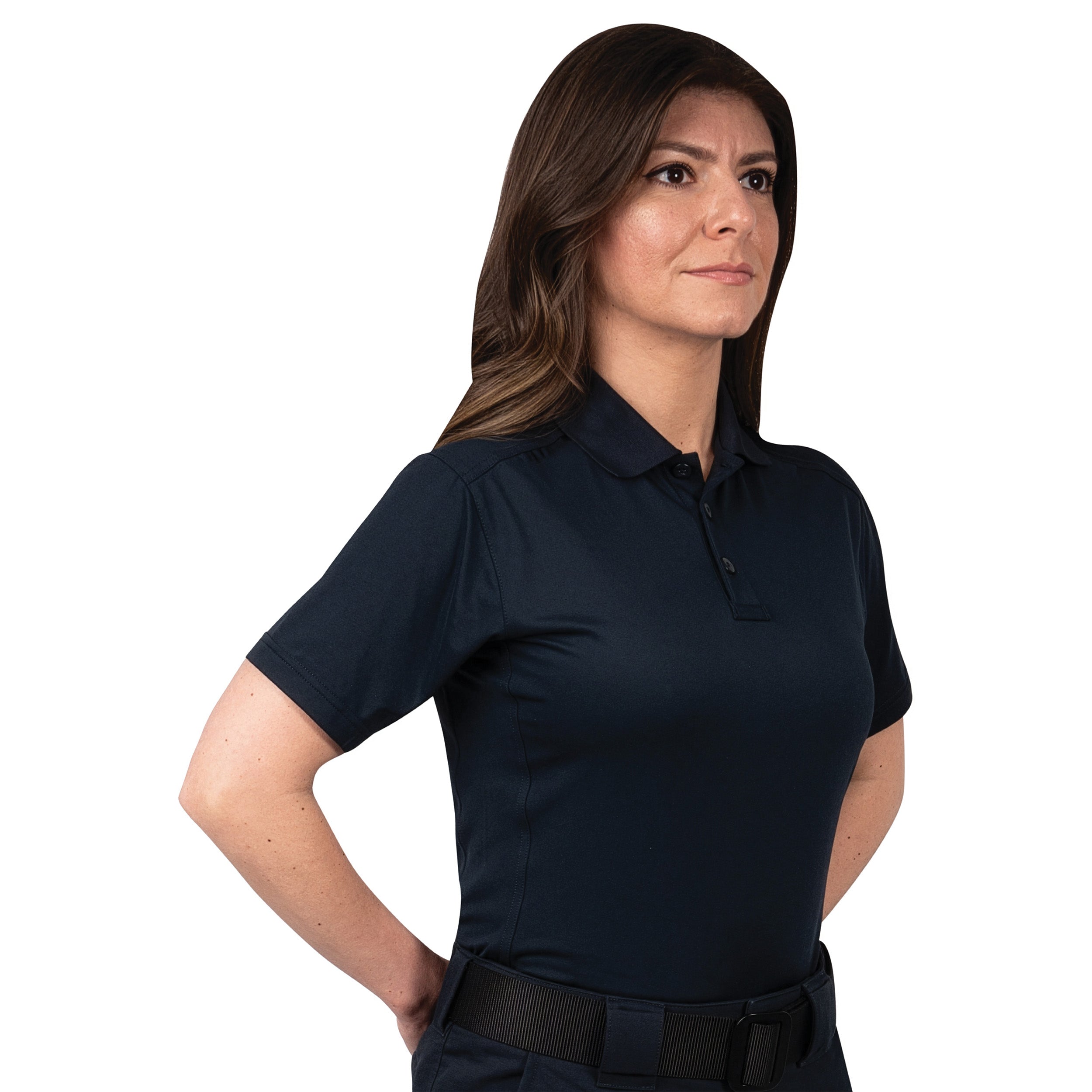 Women’s tactical performance polo shirt designed for duty, work, and everyday wear. Short sleeve stretch polo features moisture wicking, quick dry fabric, antimicrobial treatment, and breathable mesh ventilation for all day comfort. Built with a tailored women’s fit, mic tabs, pen pocket, and reinforced gusseted panels, this uniform shirt is ideal for law enforcement, EMS, security, and first responders. Lightweight polyester spandex tactical polo delivers flexibility, durability, and a clean professional look for active environments.