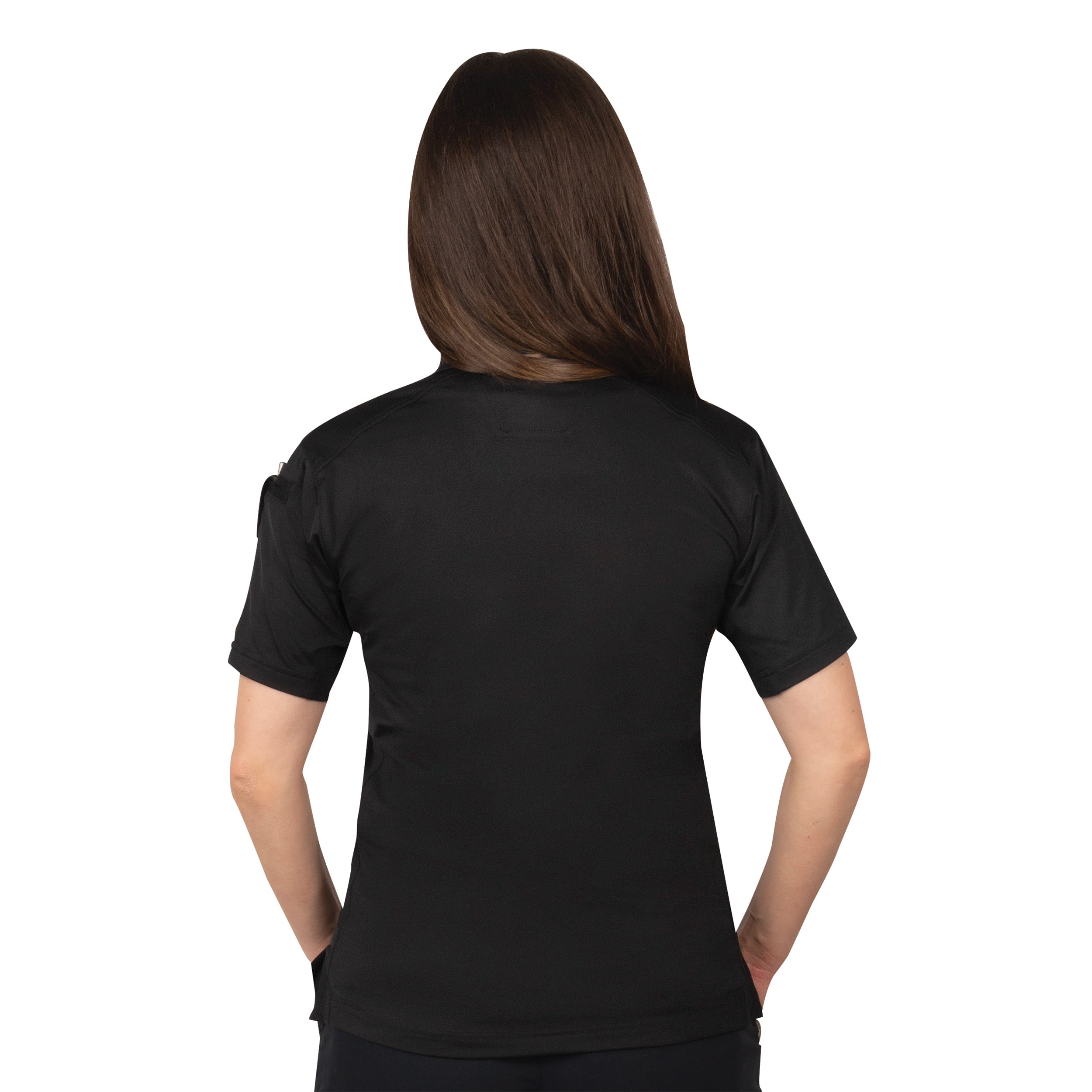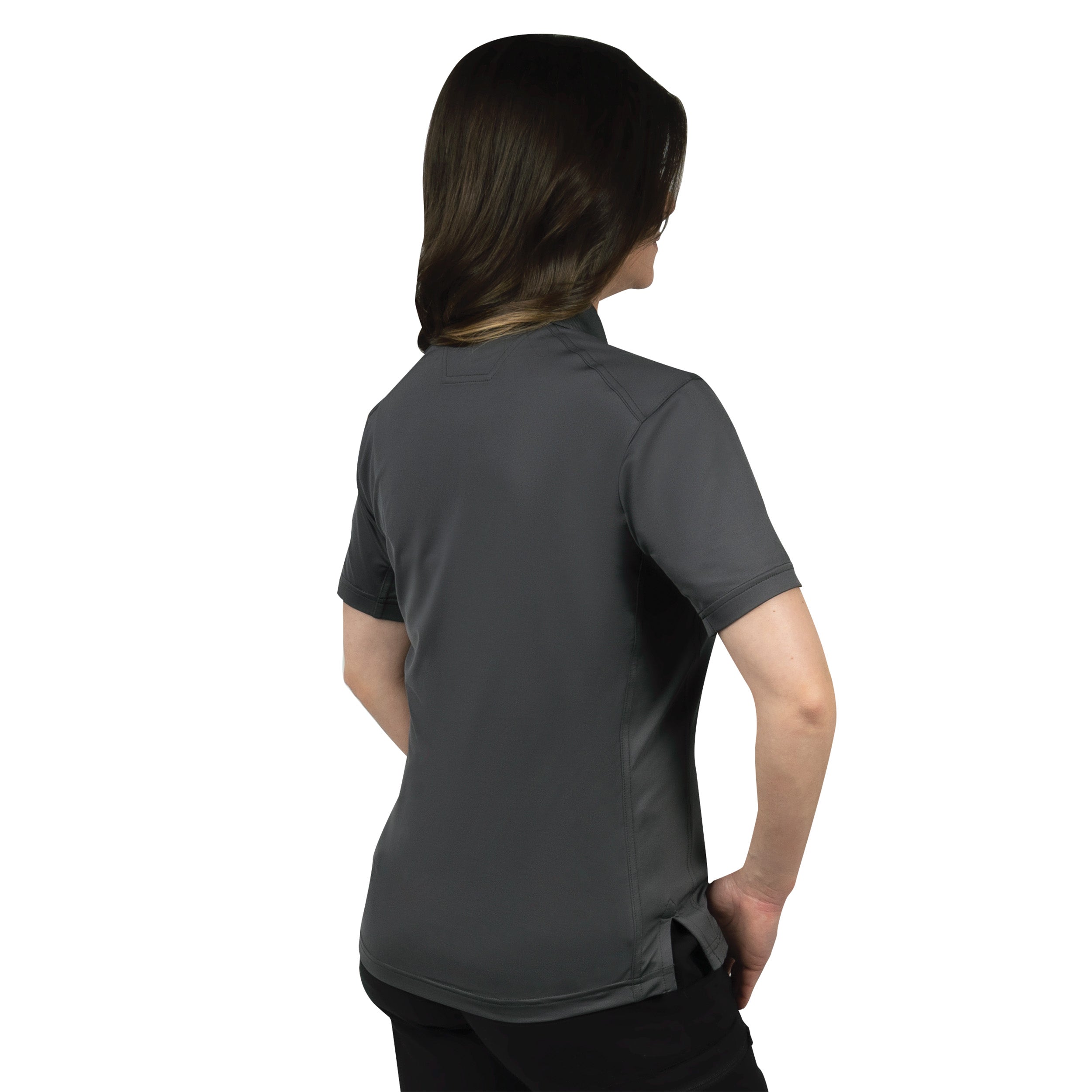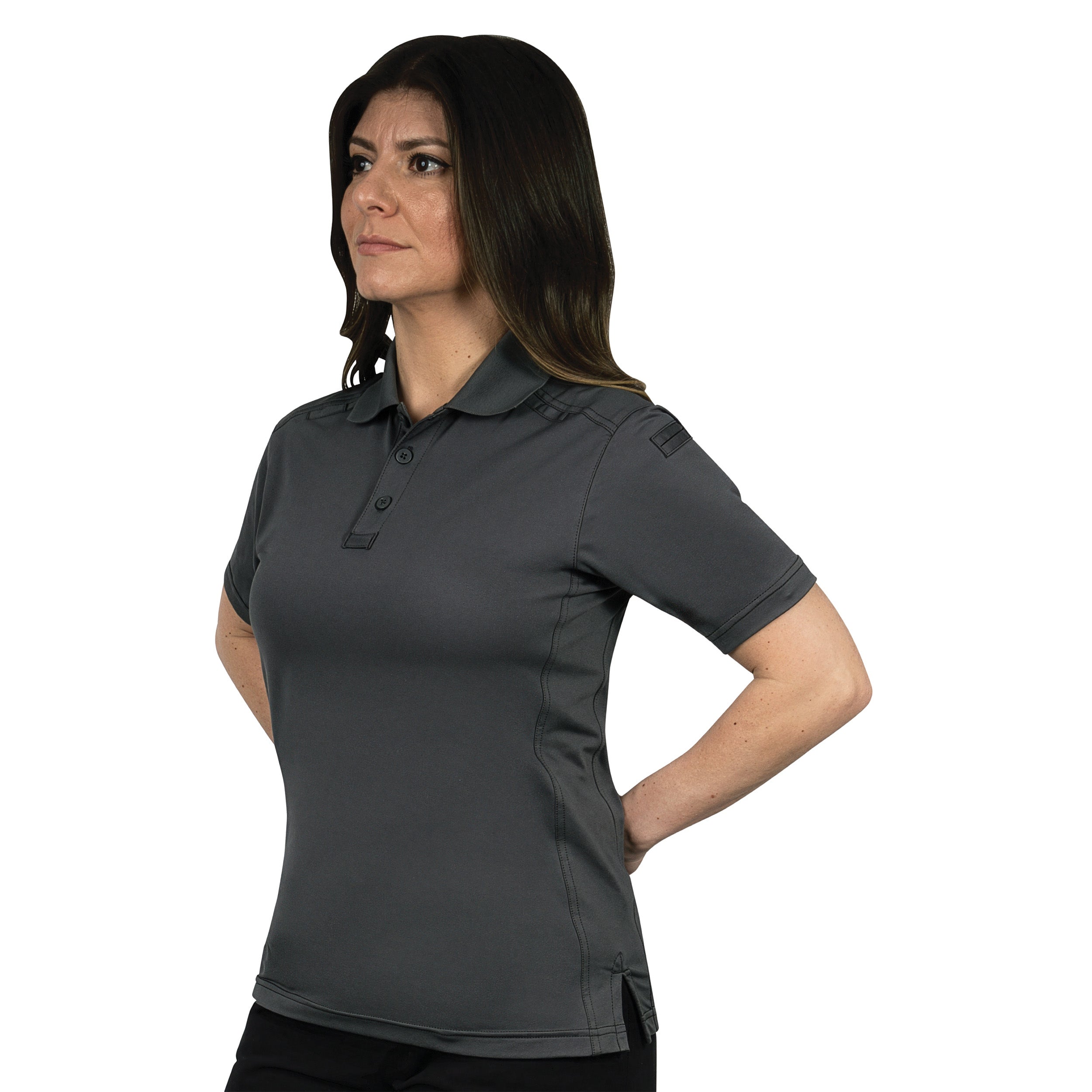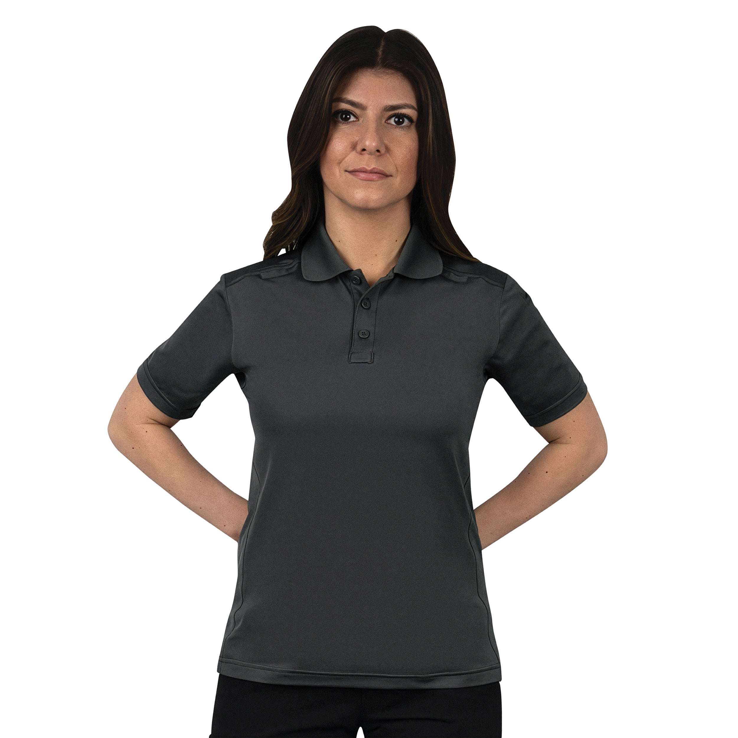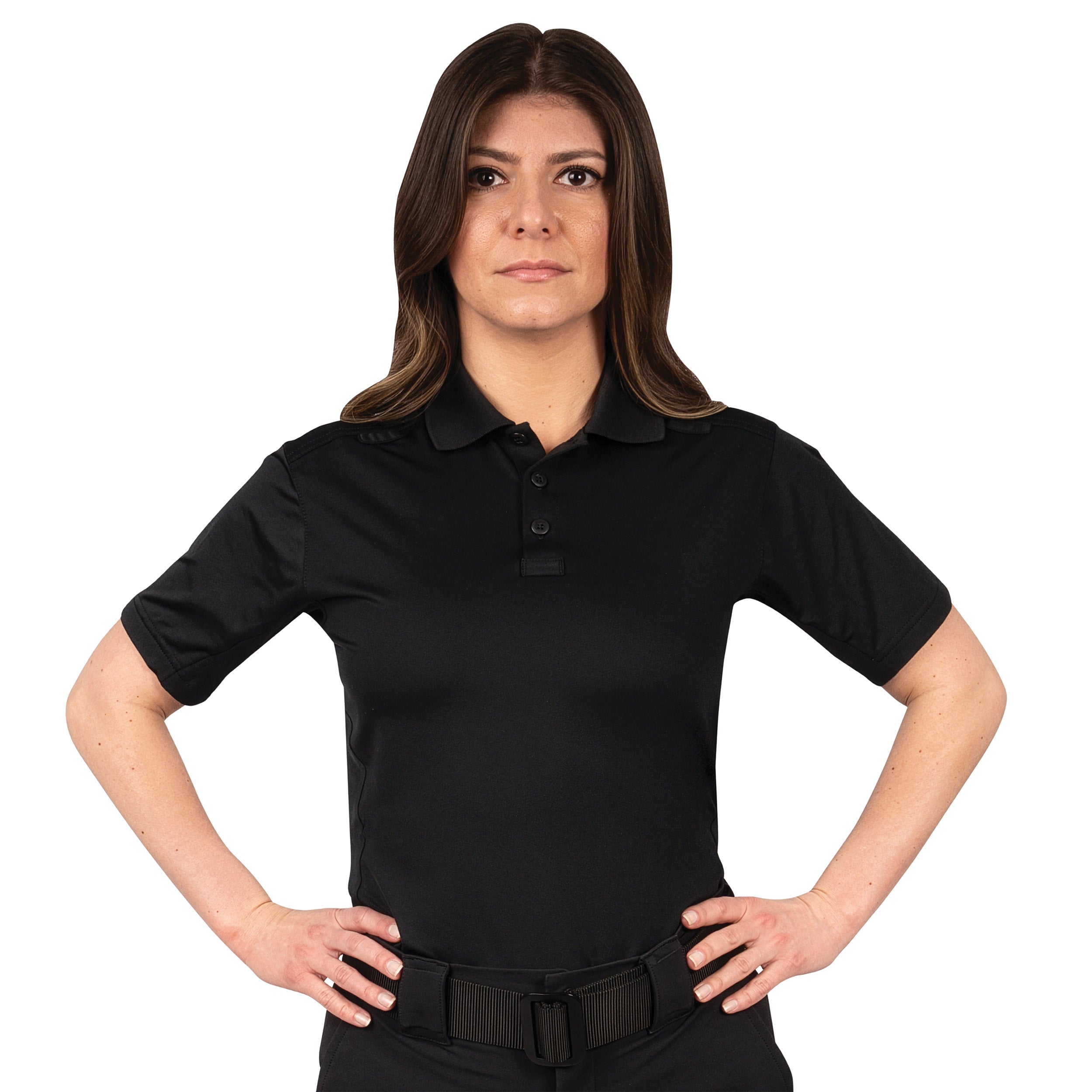 Women’s tactical performance polo shirt designed for duty, work, and everyday wear. Short sleeve stretch polo features moisture wicking, quick dry fabric, antimicrobial treatment, and breathable mesh ventilation for all day comfort. Built with a tailored women’s fit, mic tabs, pen pocket, and reinforced gusseted panels, this uniform shirt is ideal for law enforcement, EMS, security, and first responders. Lightweight polyester spandex tactical polo delivers flexibility, durability, and a clean professional look for active environments.